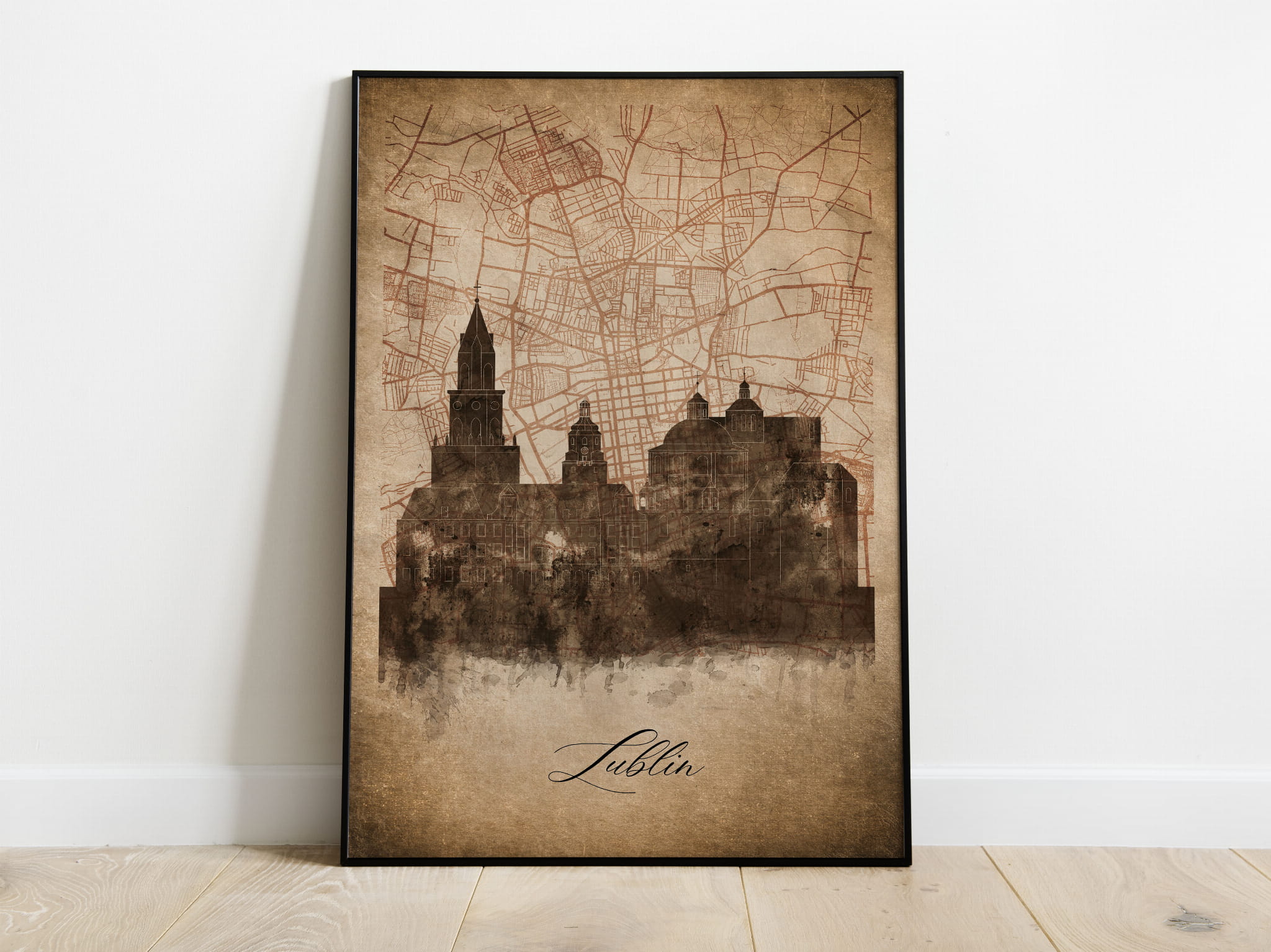 Plakat Skylines Lublin w stylu Vintage- Pionowy, Styl akwarelowy