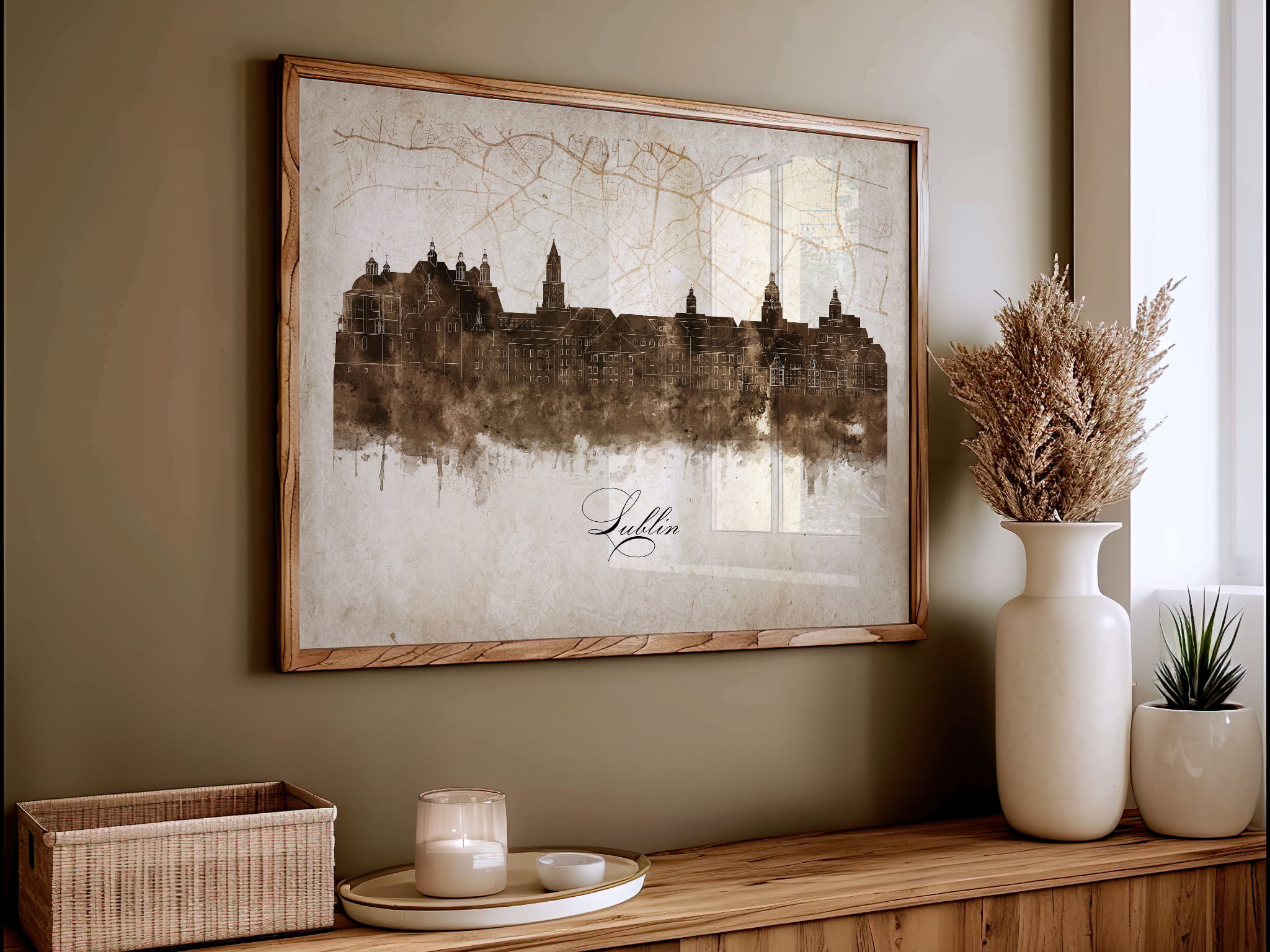 Plakaty skyline w stylu vintage to nowoczesne dzieła sztuki, które nawiązują do estetyki minionych dekad. Przedstawiają miejskie krajobrazy w retro kolorystyce, z wyblakłymi barwami i z delikatną patyną czasu. Kontury są często zmiękczone, a szczegóły budynków lekko stylizowane, co dodaje im nostalgicznego uroku. Tła plakatów utrzymane są w odcieniach przypominających stary papier, z subtelnymi teksturami i ciepłymi, przygaszonymi tonami. Całość tworzy elegancki i przytulny klimat, idealny do wnętrz, które łączą nowoczesność z klasycznym wdziękiem.
