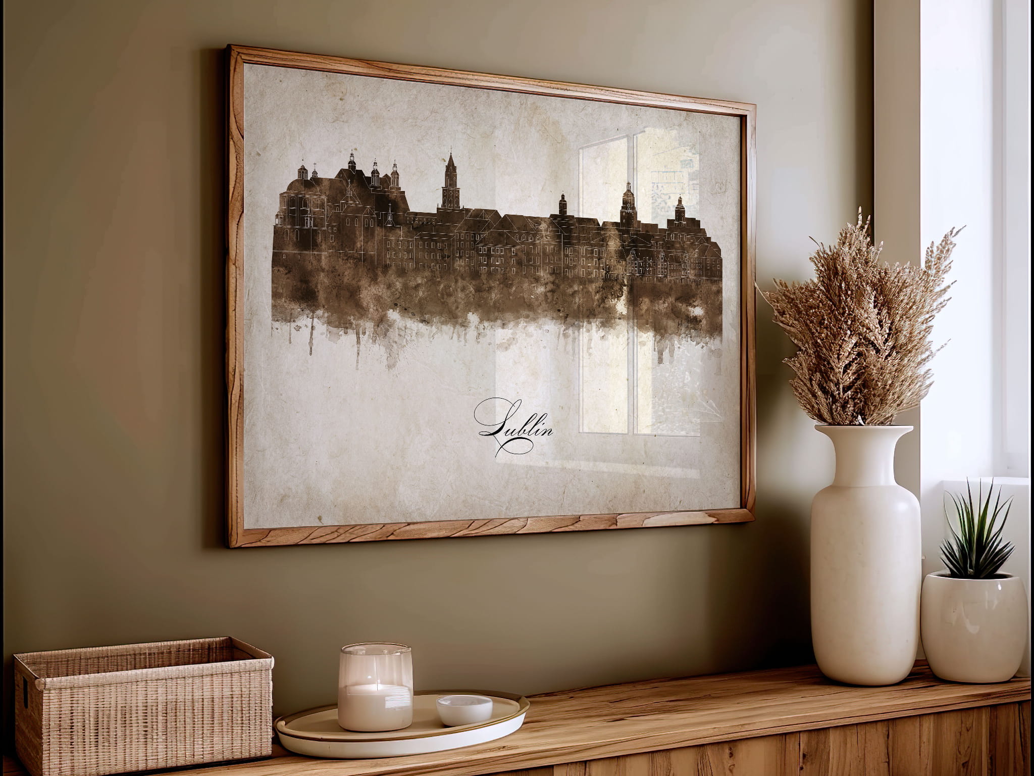 Plakaty skyline w stylu vintage to nowoczesne dzieła sztuki, które nawiązują do estetyki minionych dekad. Przedstawiają miejskie krajobrazy w retro kolorystyce, z wyblakłymi barwami i z delikatną patyną czasu. Kontury są często zmiękczone, a szczegóły budynków lekko stylizowane, co dodaje im nostalgicznego uroku. Tła plakatów utrzymane są w odcieniach przypominających stary papier, z subtelnymi teksturami i ciepłymi, przygaszonymi tonami. Całość tworzy elegancki i przytulny klimat, idealny do wnętrz, które łączą nowoczesność z klasycznym wdziękiem.