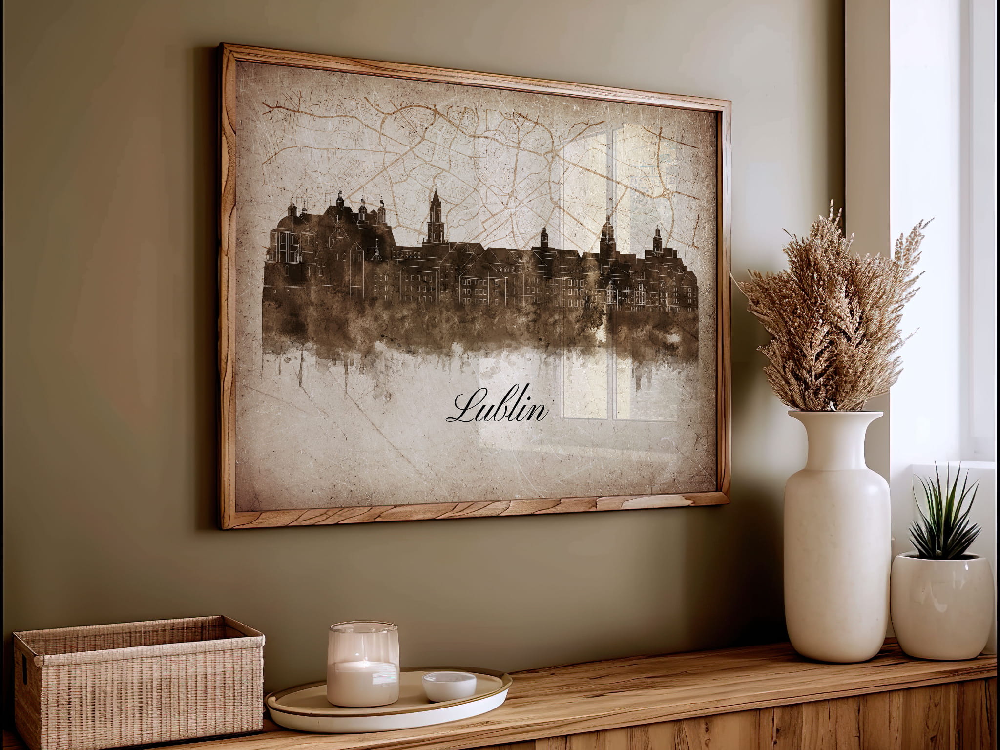 Plakat Skylines Lublin w stylu Vintage- Poziomy