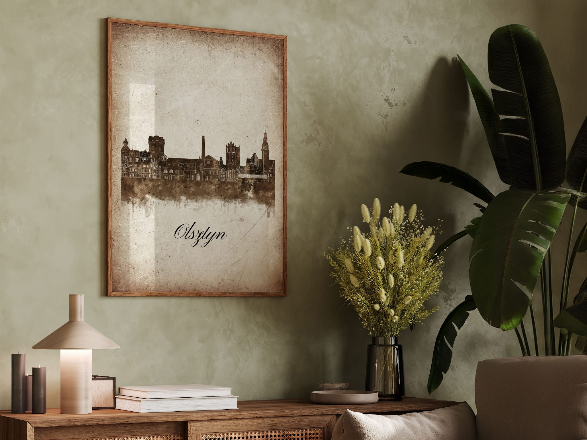 Plakat Skylines Olsztyn w stylu Vintage- Pionowy, Styl akwarelowy