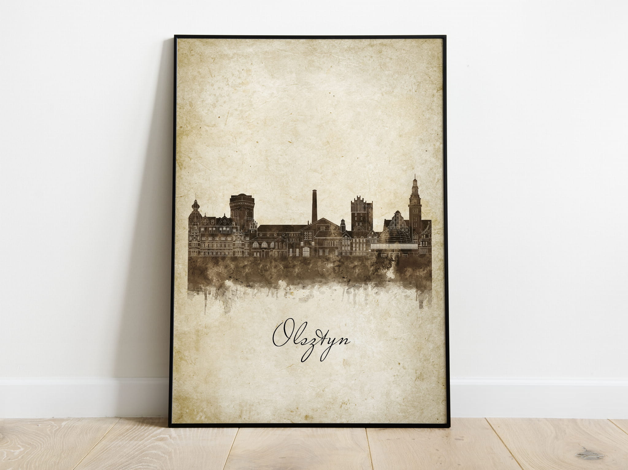 Plakat Skylines Olsztyn w stylu Vintage- Pionowy, Styl akwarelowy