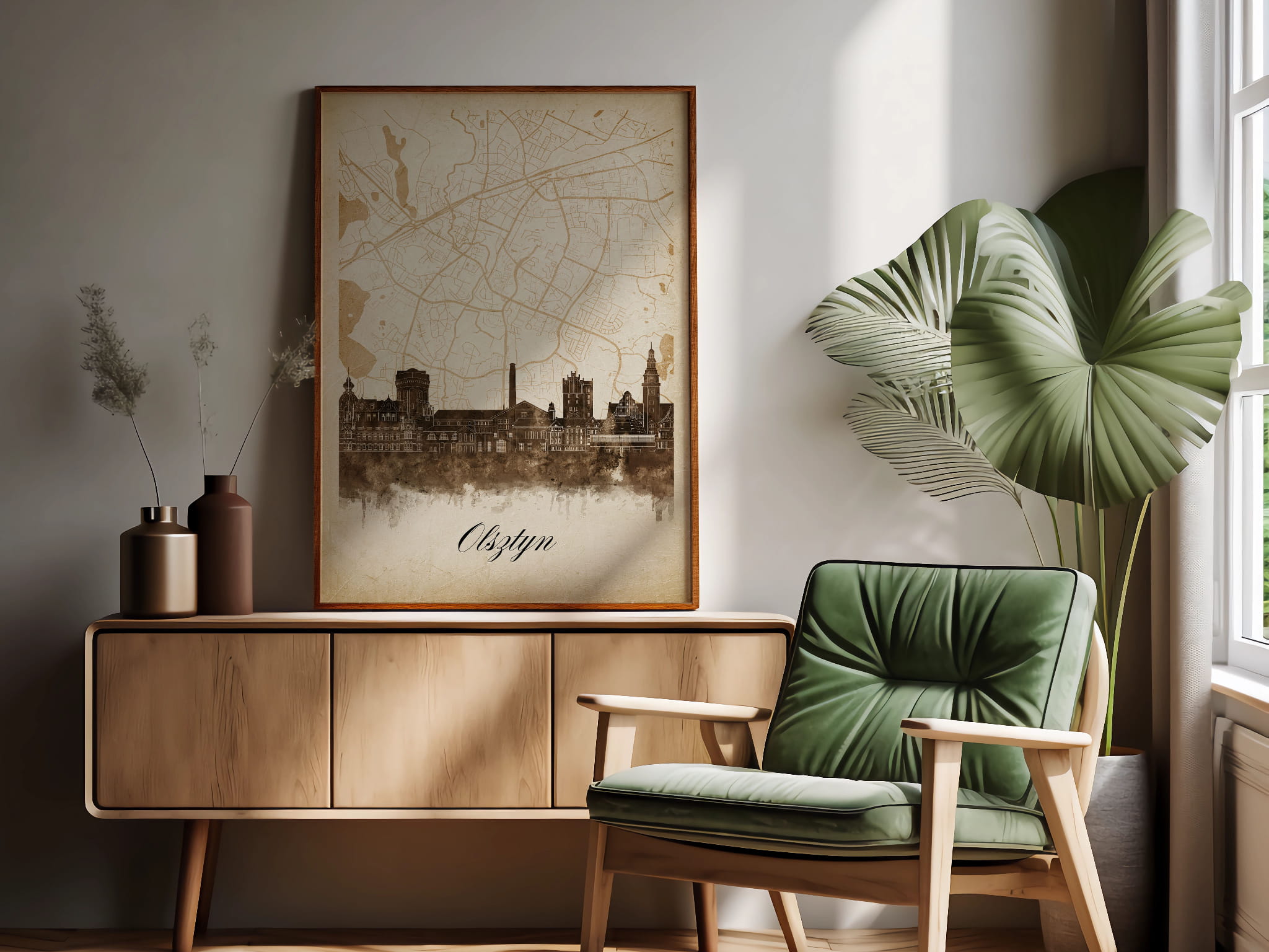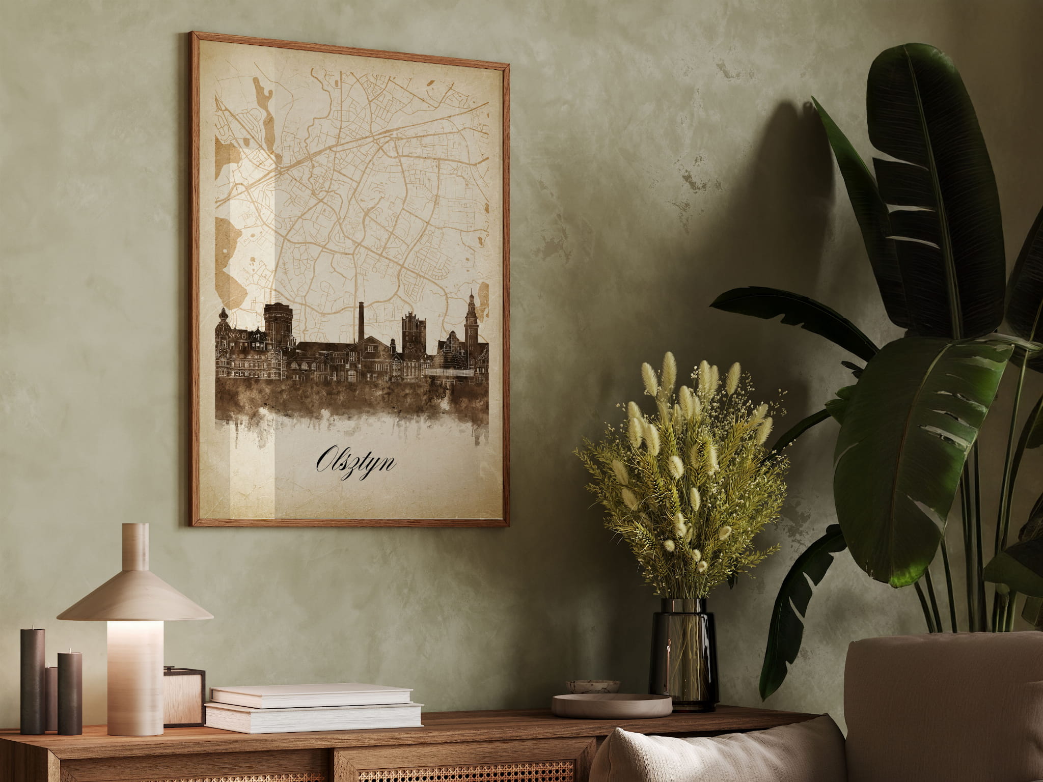 Plakat Skylines Olsztyn w stylu Vintage- Pionowy, Styl akwarelowy