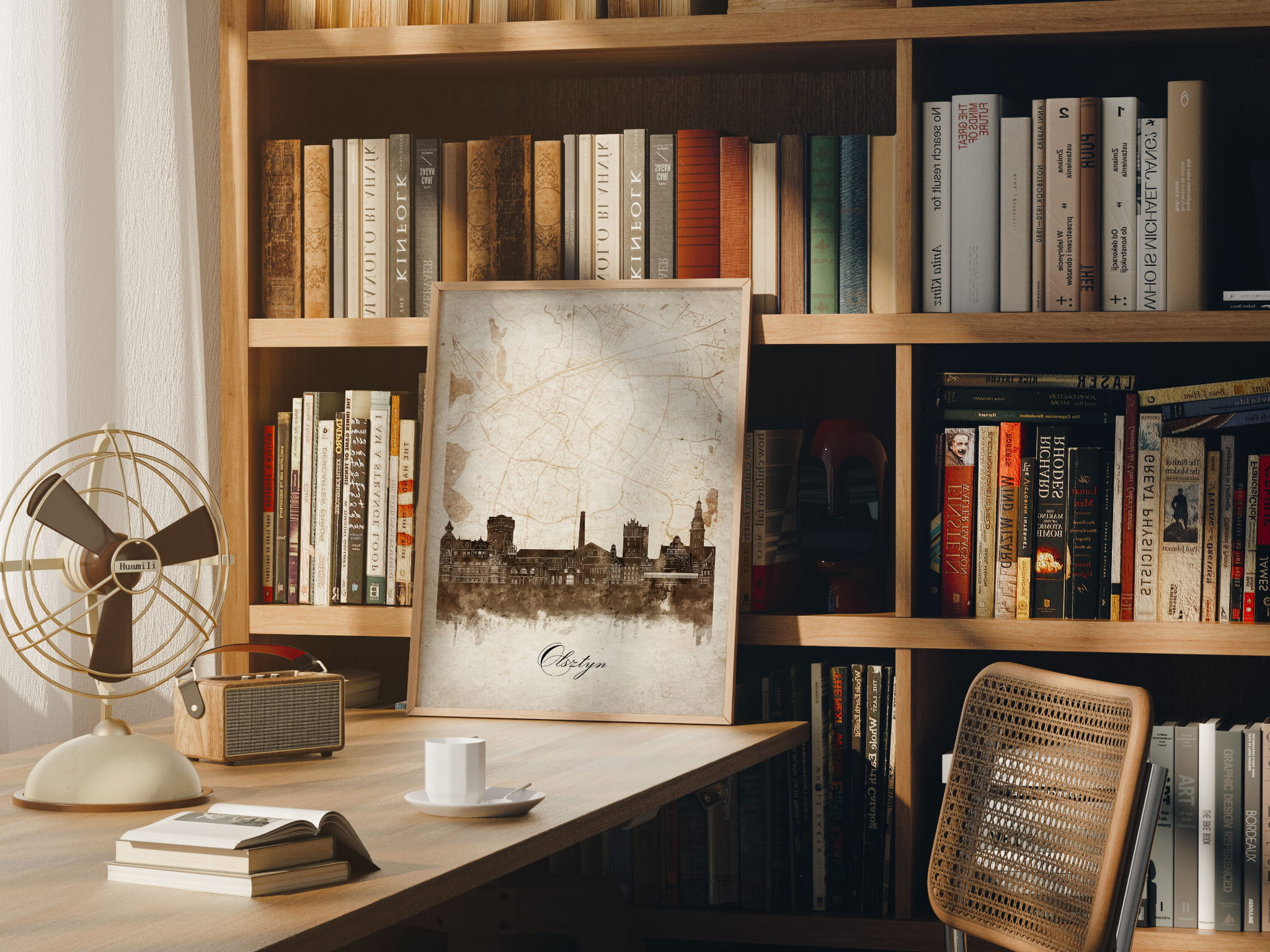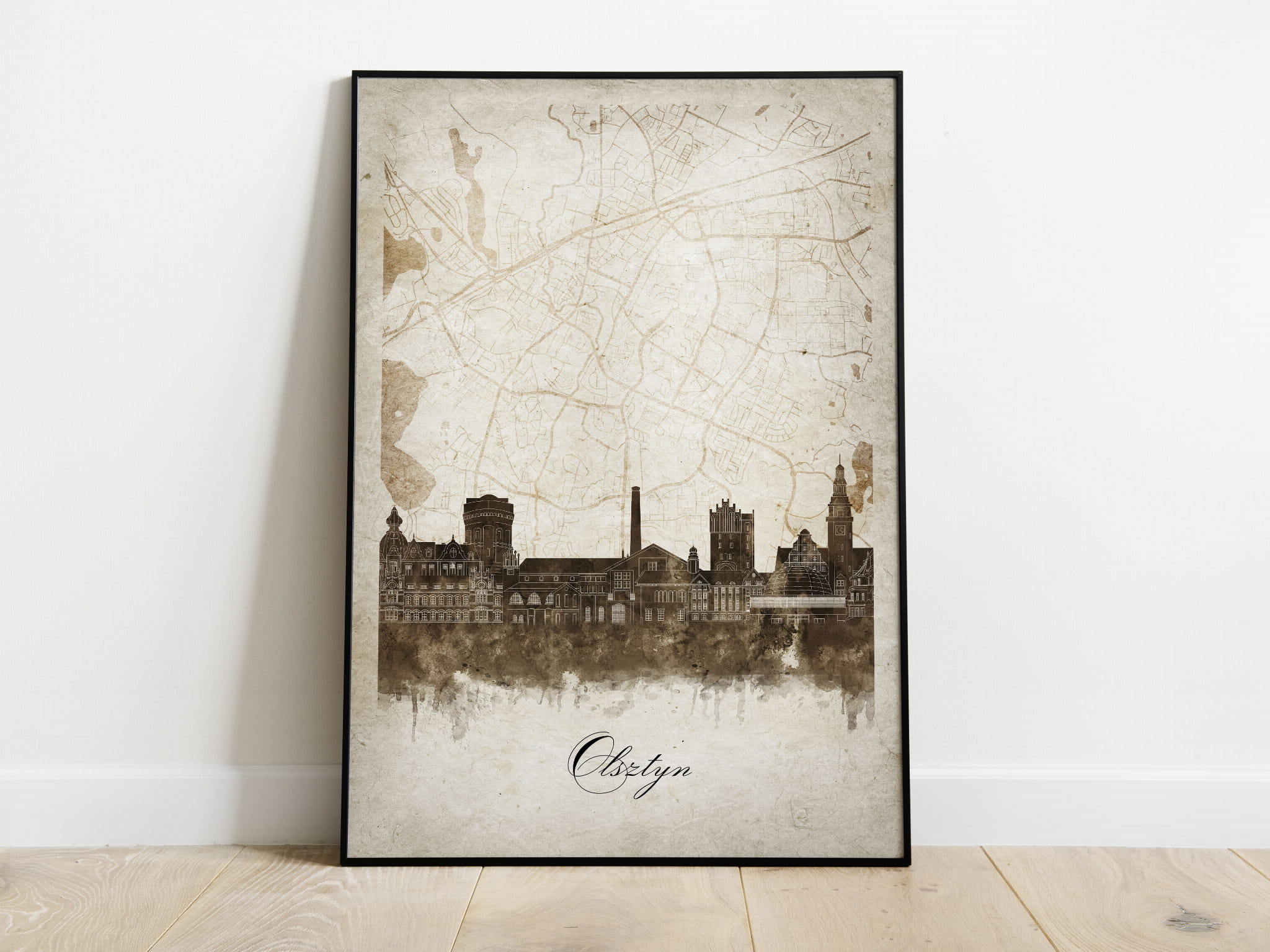 Plakat Skylines Olsztyn w stylu Vintage- Pionowy, Styl akwarelowy