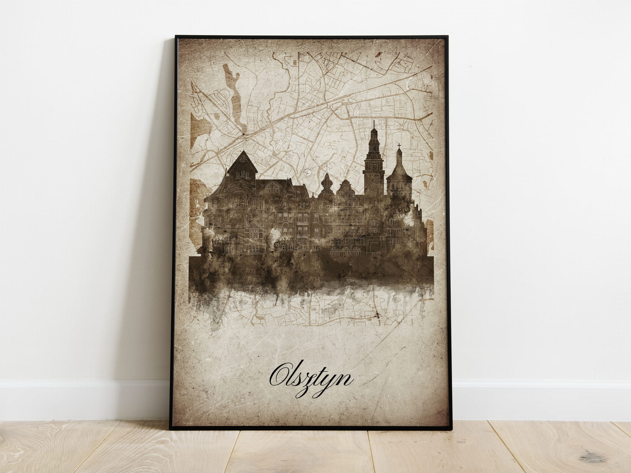 Plakat Skylines Olsztyn w stylu Vintage- Pionowy, Styl akwarelowy