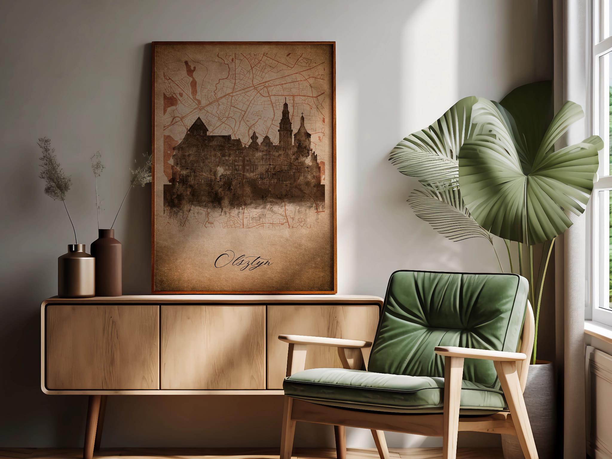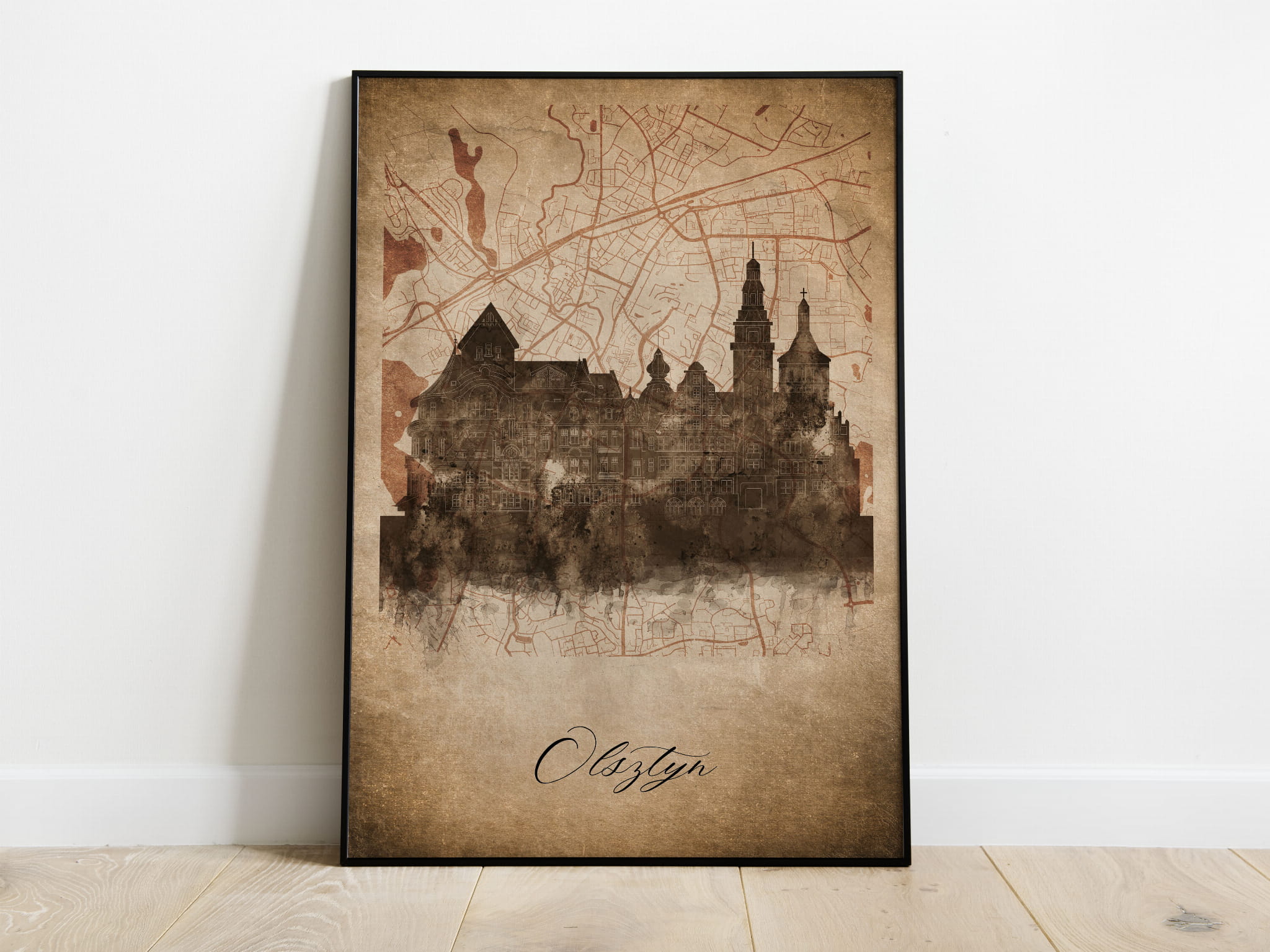 Plakat Skylines Olsztyn w stylu Vintage- Pionowy, Styl akwarelowy