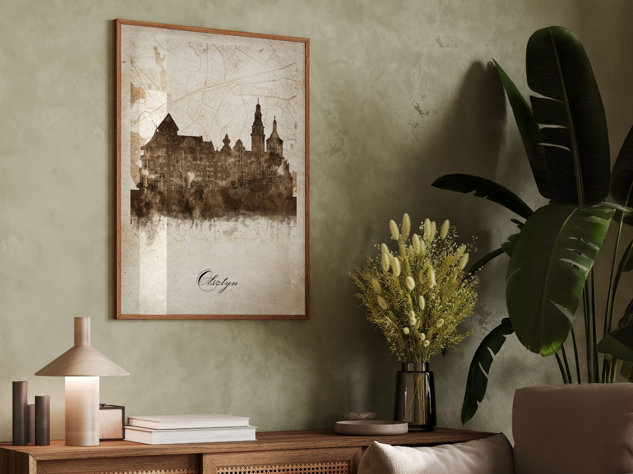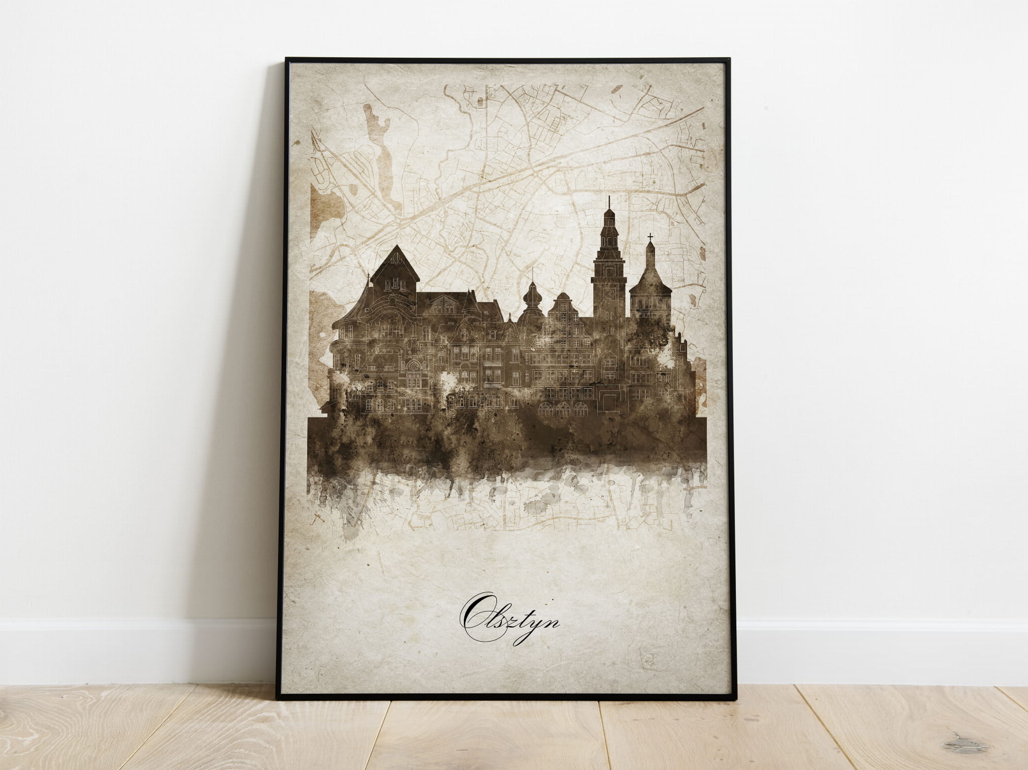 Plakat Skylines Olsztyn w stylu Vintage- Pionowy, Styl akwarelowy