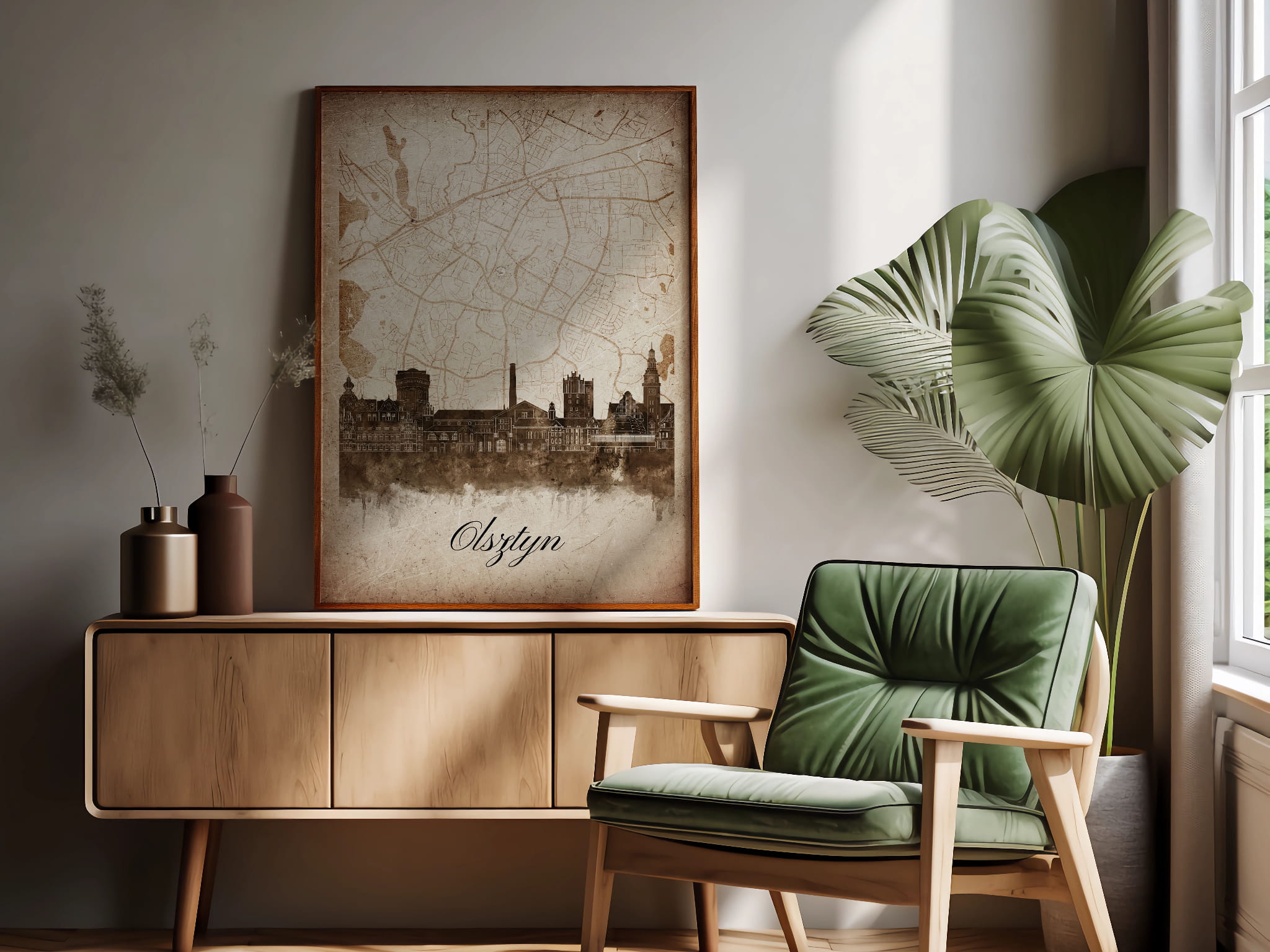 Plakaty skyline w stylu vintage to nowoczesne dzieła sztuki, które nawiązują do estetyki minionych dekad. Przedstawiają miejskie krajobrazy w retro kolorystyce, z wyblakłymi barwami i z delikatną patyną czasu. Kontury są często zmiękczone, a szczegóły budynków lekko stylizowane, co dodaje im nostalgicznego uroku. Tła plakatów utrzymane są w odcieniach przypominających stary papier, z subtelnymi teksturami i ciepłymi, przygaszonymi tonami. Całość tworzy elegancki i przytulny klimat, idealny do wnętrz, które łączą nowoczesność z klasycznym wdziękiem.