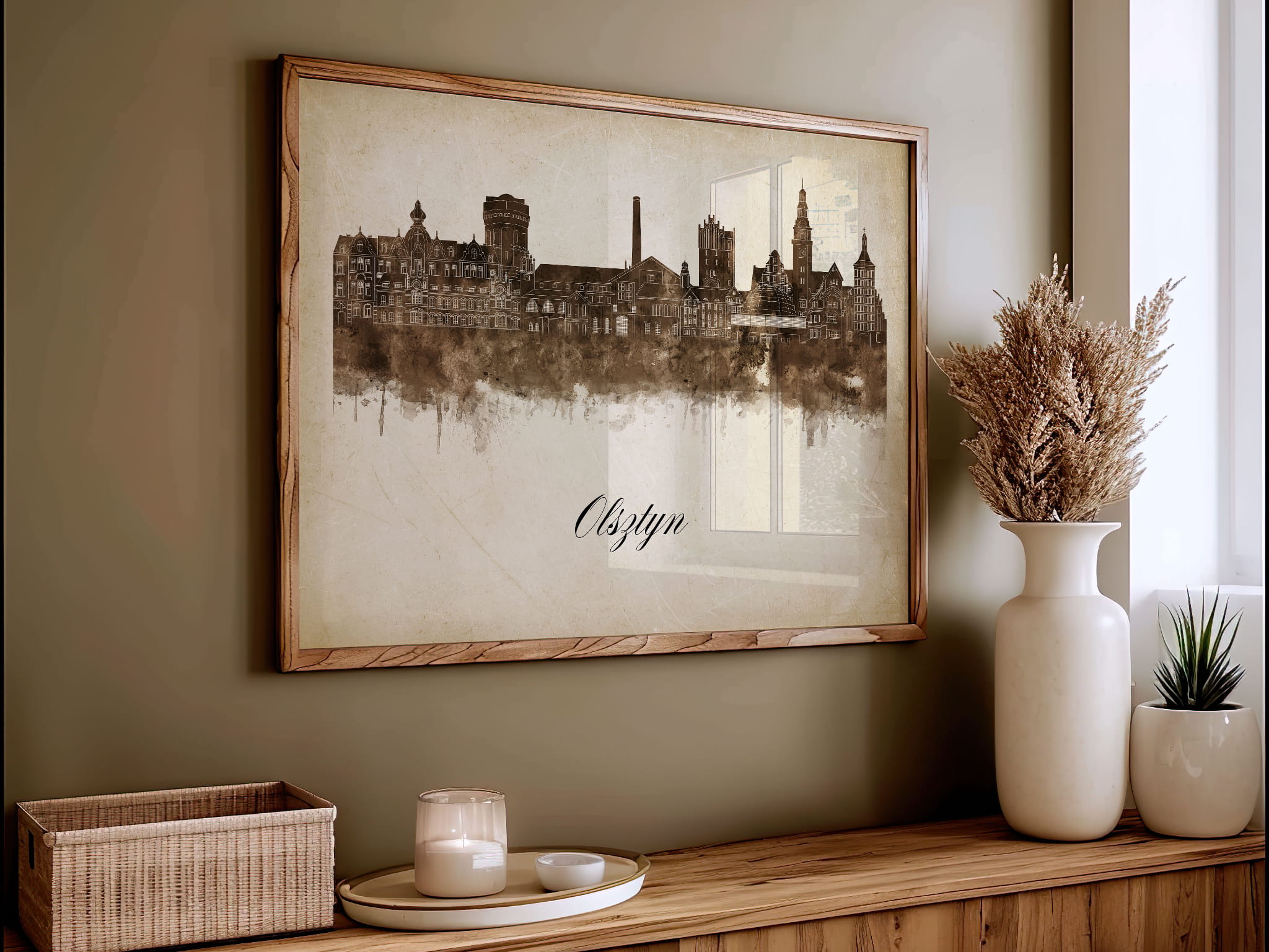Plakaty skyline w stylu vintage to nowoczesne dzieła sztuki, które nawiązują do estetyki minionych dekad. Przedstawiają miejskie krajobrazy w retro kolorystyce, z wyblakłymi barwami i z delikatną patyną czasu. Kontury są często zmiękczone, a szczegóły budynków lekko stylizowane, co dodaje im nostalgicznego uroku. Tła plakatów utrzymane są w odcieniach przypominających stary papier, z subtelnymi teksturami i ciepłymi, przygaszonymi tonami. Całość tworzy elegancki i przytulny klimat, idealny do wnętrz, które łączą nowoczesność z klasycznym wdziękiem.