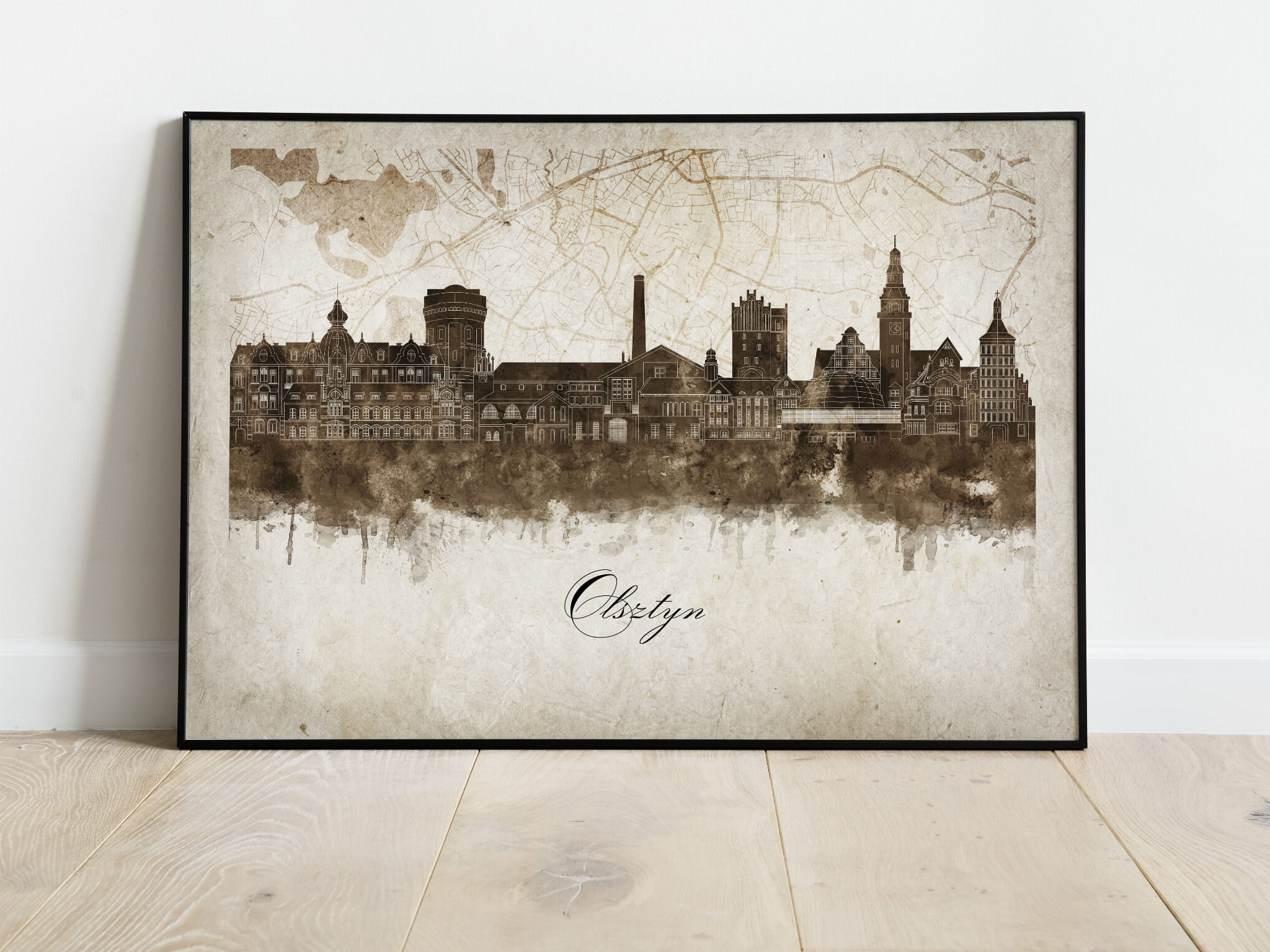 Plakat Skylines Olsztyn w stylu Vintage- Poziomy