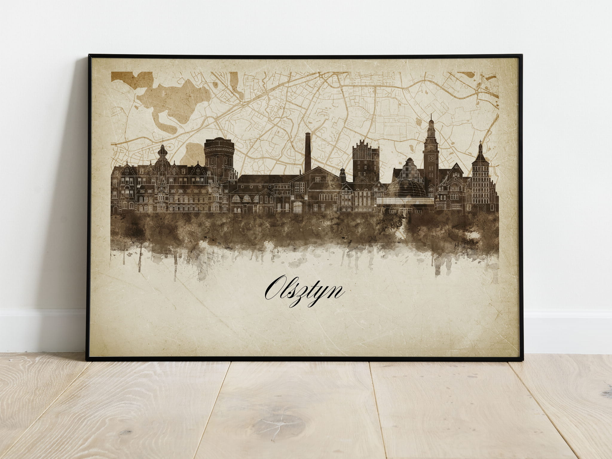 Plakat Skylines Olsztyn w stylu Vintage- Poziomy