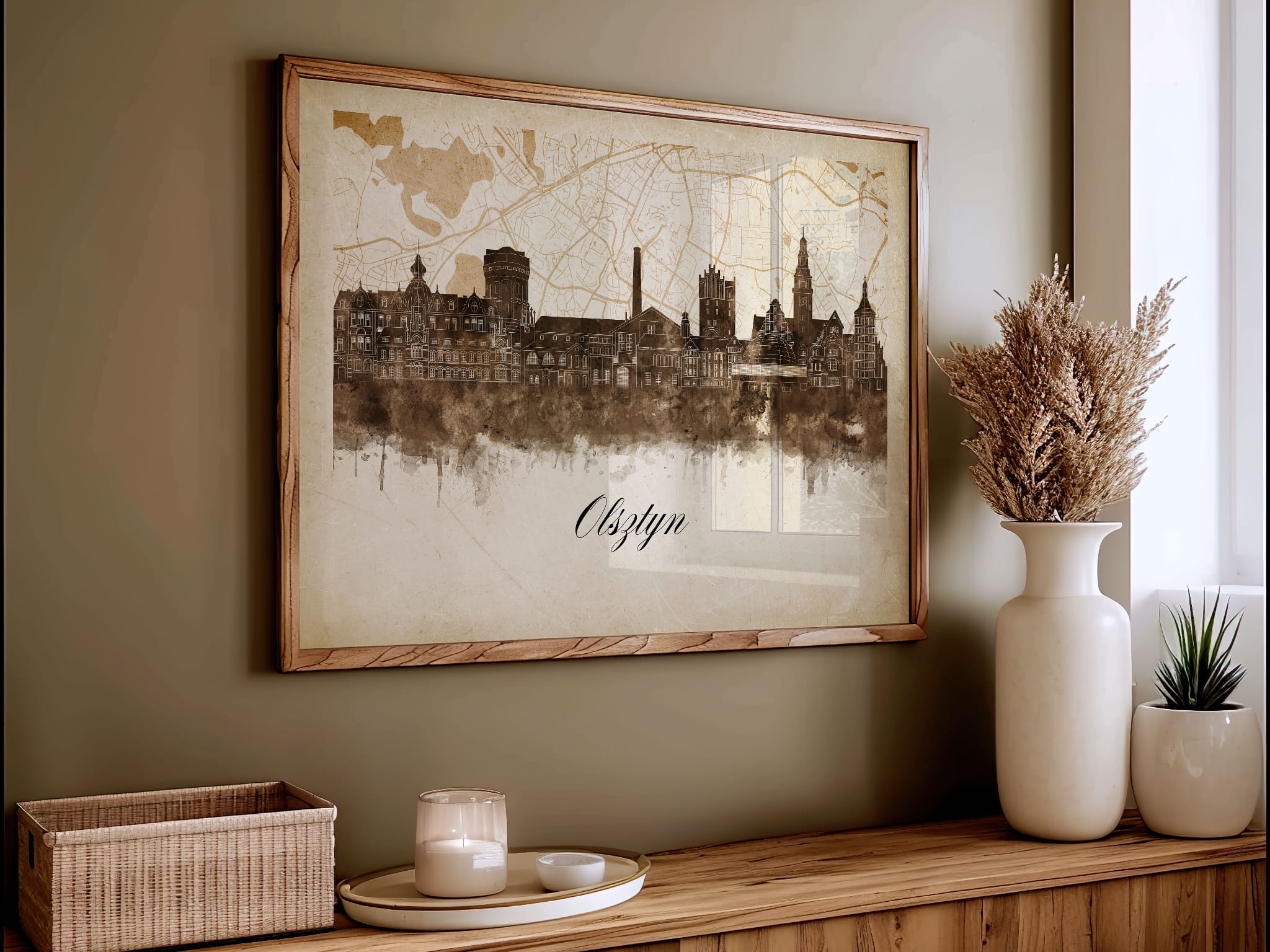 Plakaty skyline w stylu vintage to nowoczesne dzieła sztuki, które nawiązują do estetyki minionych dekad. Przedstawiają miejskie krajobrazy w retro kolorystyce, z wyblakłymi barwami i z delikatną patyną czasu. Kontury są często zmiękczone, a szczegóły budynków lekko stylizowane, co dodaje im nostalgicznego uroku. Tła plakatów utrzymane są w odcieniach przypominających stary papier, z subtelnymi teksturami i ciepłymi, przygaszonymi tonami. Całość tworzy elegancki i przytulny klimat, idealny do wnętrz, które łączą nowoczesność z klasycznym wdziękiem.