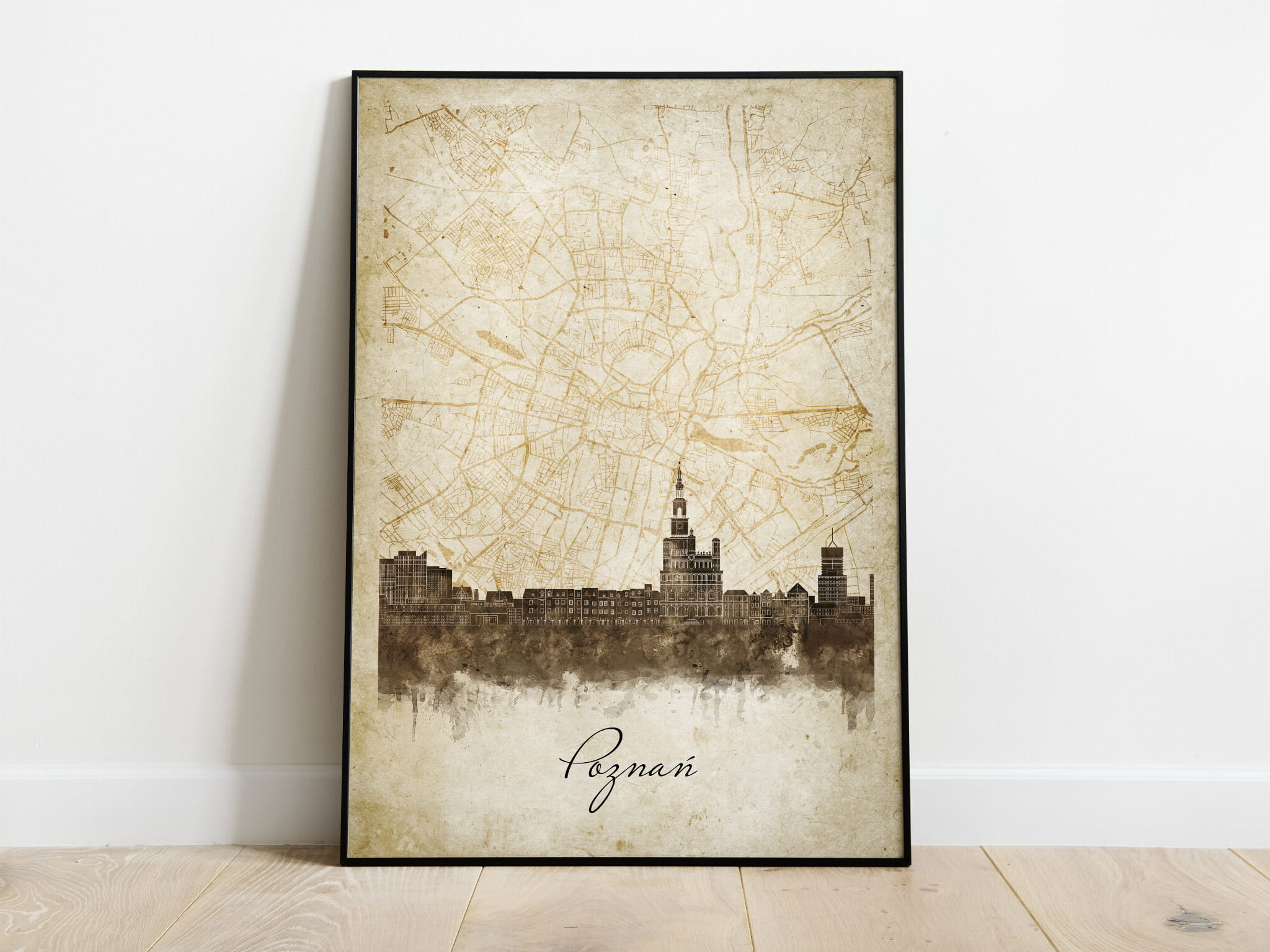 Plakaty skyline w stylu vintage to nowoczesne dzieła sztuki, które nawiązują do estetyki minionych dekad. Przedstawiają miejskie krajobrazy w retro kolorystyce, z wyblakłymi barwami i z delikatną patyną czasu. Kontury są często zmiękczone, a szczegóły budynków lekko stylizowane, co dodaje im nostalgicznego uroku. Tła plakatów utrzymane są w odcieniach przypominających stary papier, z subtelnymi teksturami i ciepłymi, przygaszonymi tonami. Całość tworzy elegancki i przytulny klimat, idealny do wnętrz, które łączą nowoczesność z klasycznym wdziękiem.