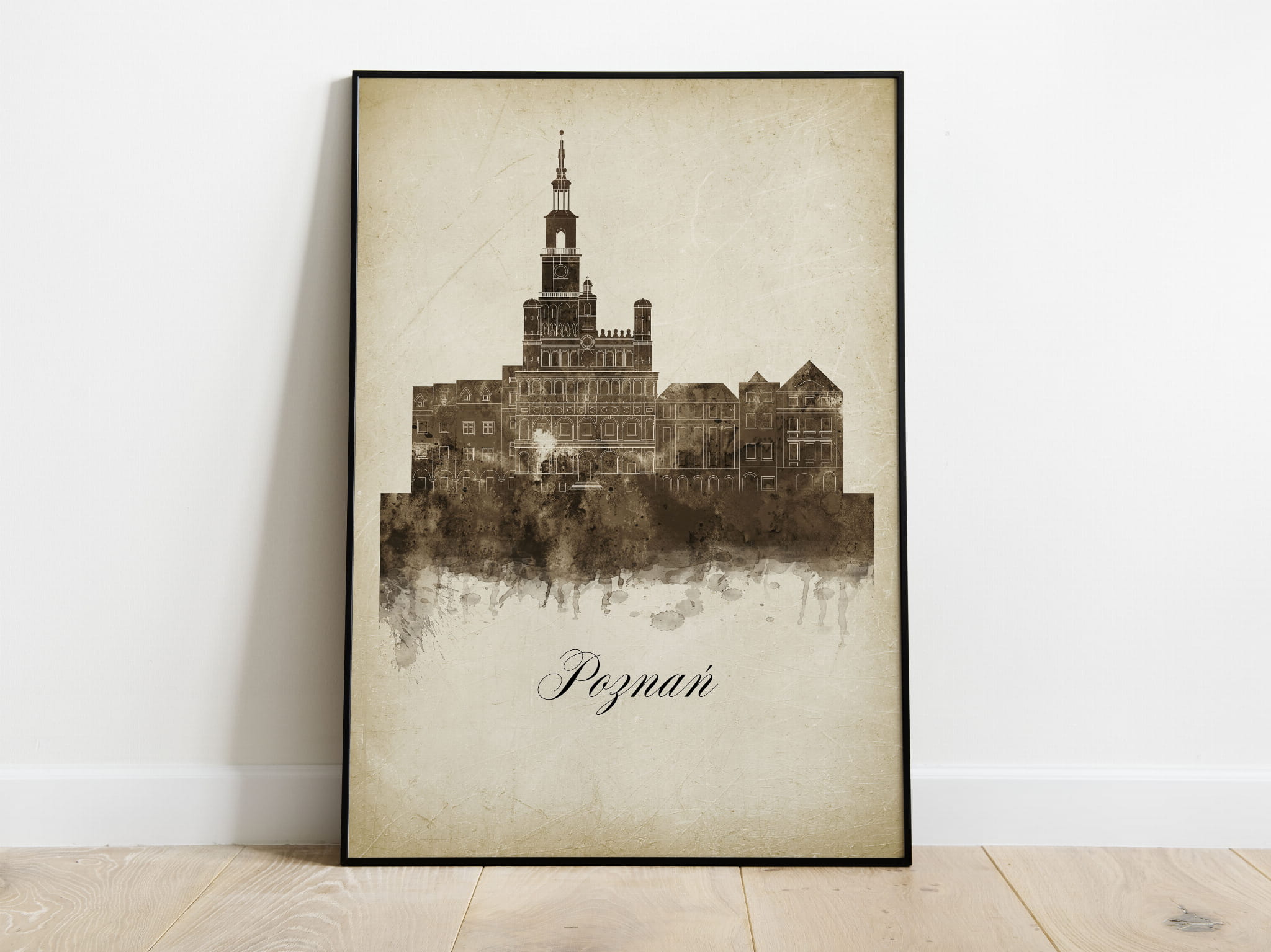 Plakat Skylines Poznań w stylu Vintage- Pionowy, Styl akwarelowy