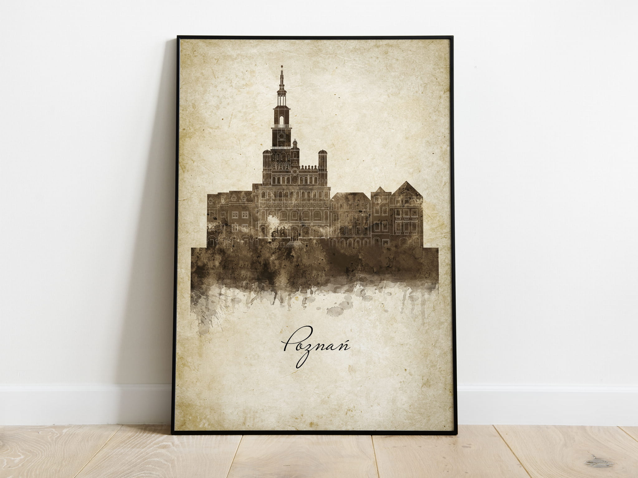 Plakat Skylines Poznań w stylu Vintage- Pionowy, Styl akwarelowy