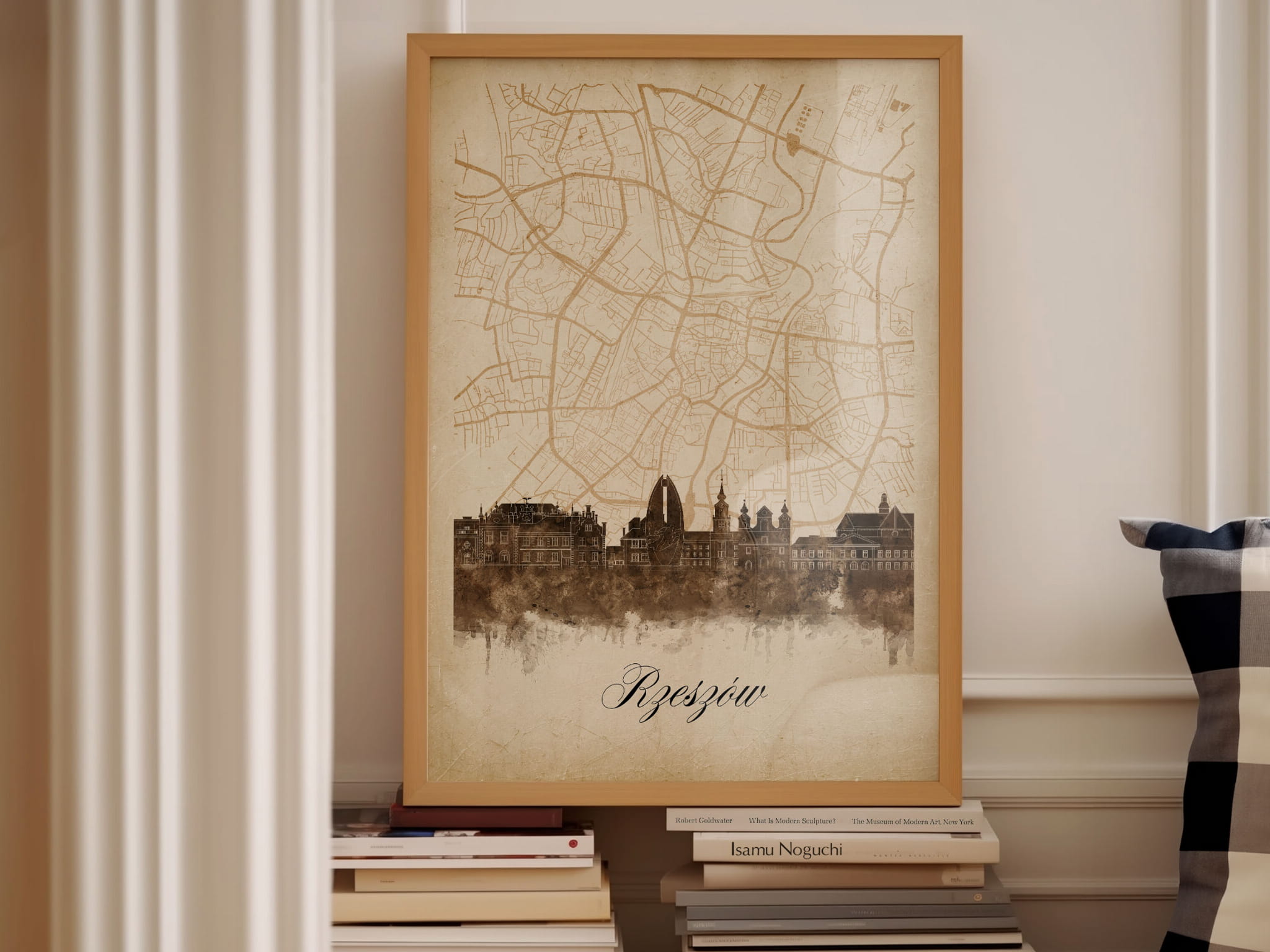Plakaty skyline w stylu vintage to nowoczesne dzieła sztuki, które nawiązują do estetyki minionych dekad. Przedstawiają miejskie krajobrazy w retro kolorystyce, z wyblakłymi barwami i z delikatną patyną czasu. Kontury są często zmiękczone, a szczegóły budynków lekko stylizowane, co dodaje im nostalgicznego uroku. Tła plakatów utrzymane są w odcieniach przypominających stary papier, z subtelnymi teksturami i ciepłymi, przygaszonymi tonami. Całość tworzy elegancki i przytulny klimat, idealny do wnętrz, które łączą nowoczesność z klasycznym wdziękiem.