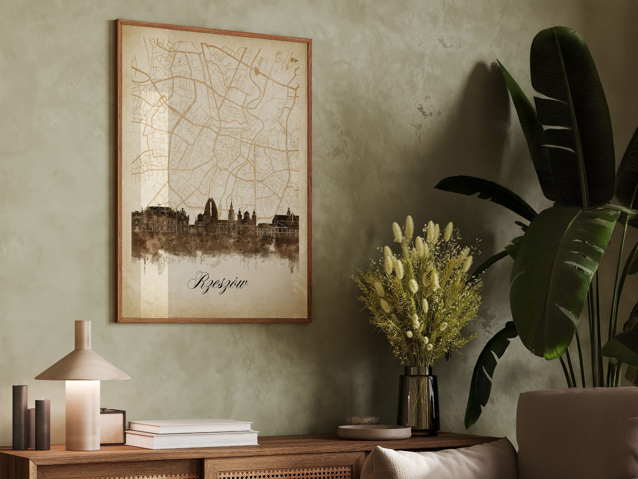 Plakat Skylines Rzeszów w stylu Vintage- Pionowy, Styl akwarelowy