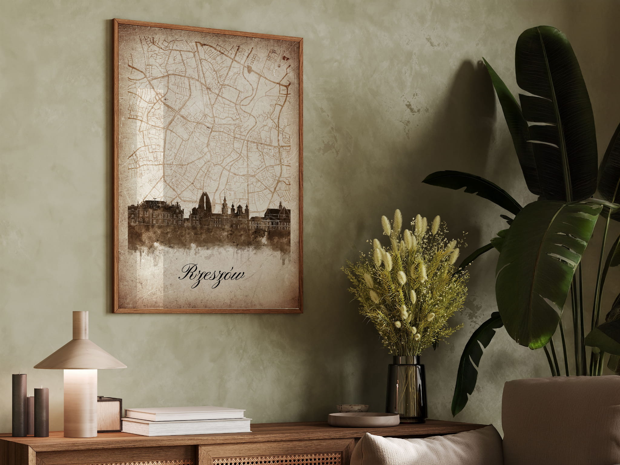 Plakat Skylines Rzeszów w stylu Vintage- Pionowy, Styl akwarelowy