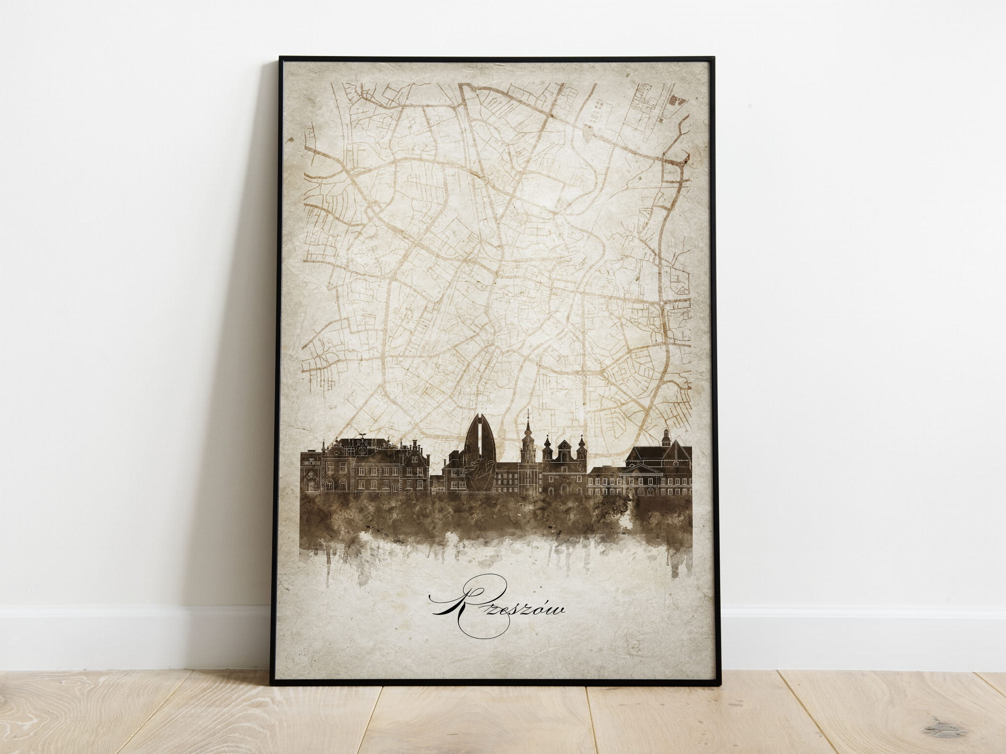 Plakat Skylines Rzeszów w stylu Vintage- Pionowy, Styl akwarelowy