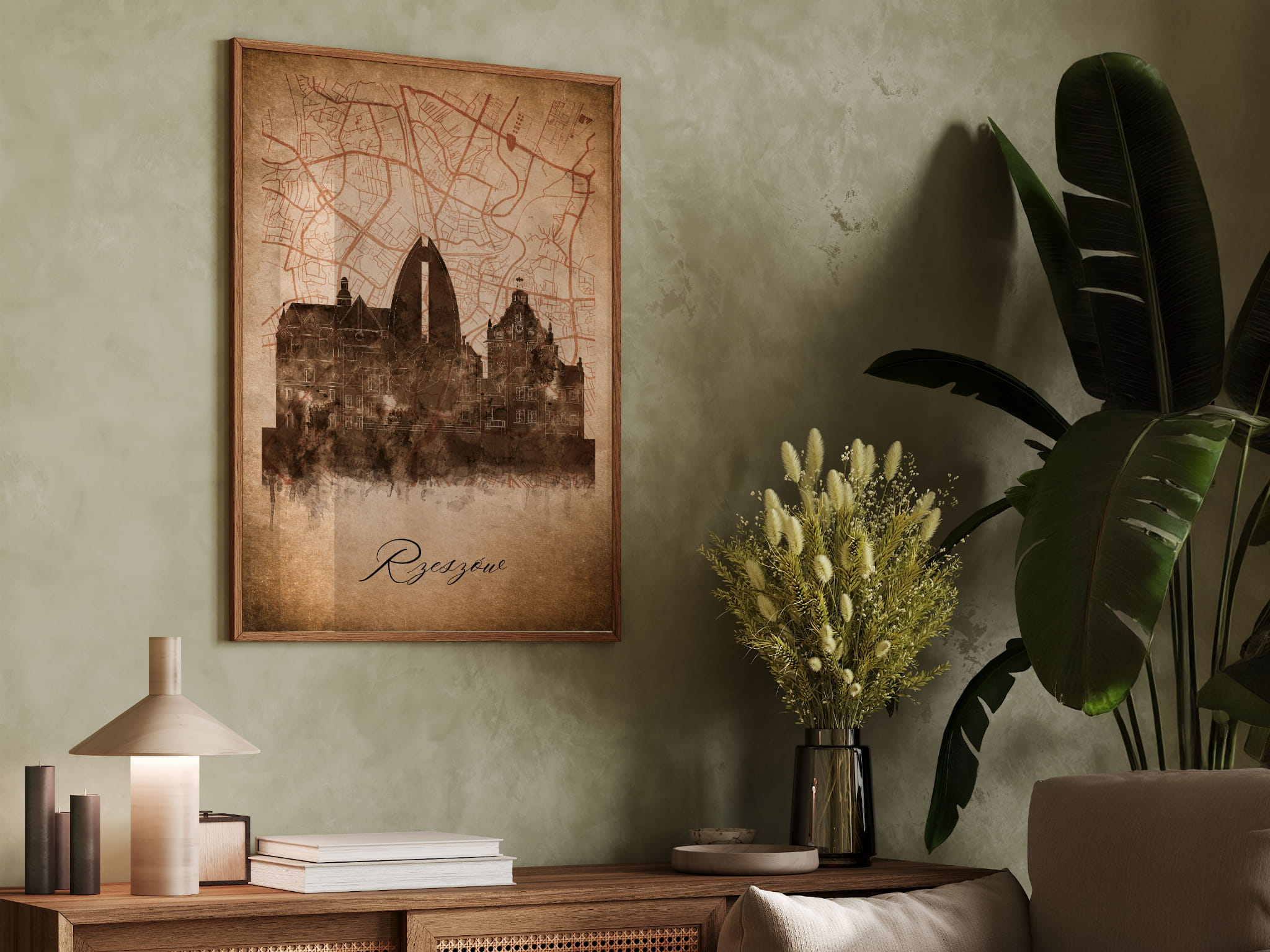 Plakat Skylines Rzeszów w stylu Vintage- Pionowy, Styl akwarelowy