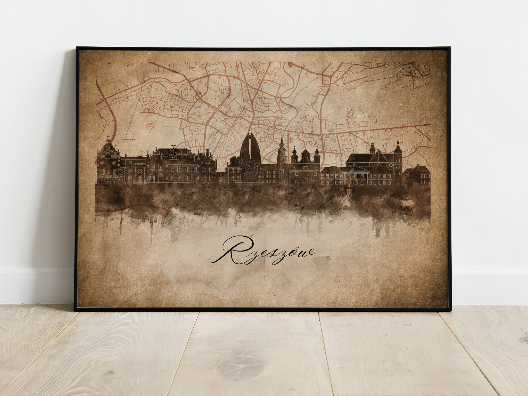 Plakat Skylines Rzeszów w stylu Vintage- Poziomy