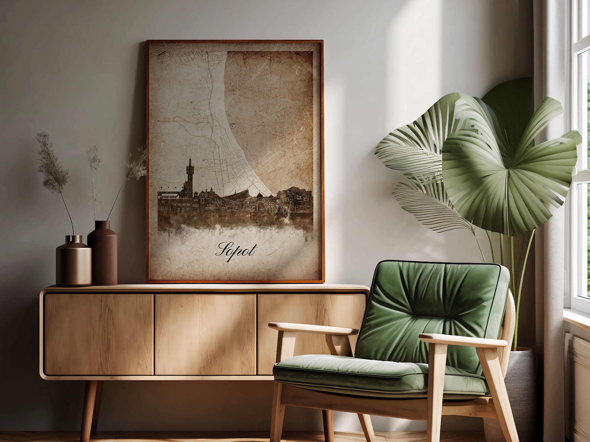 Plakat Skylines Sopot w stylu Vintage- Pionowy, Styl akwarelowy