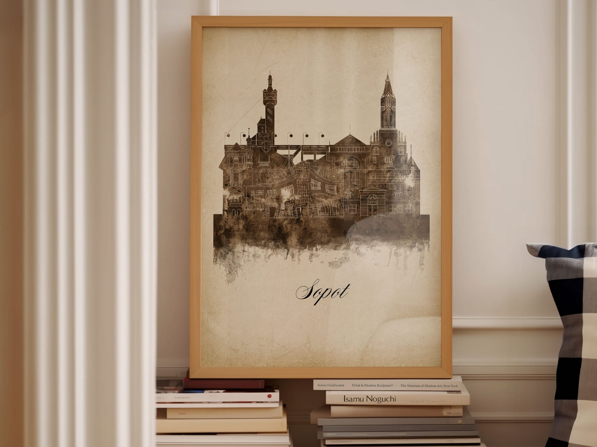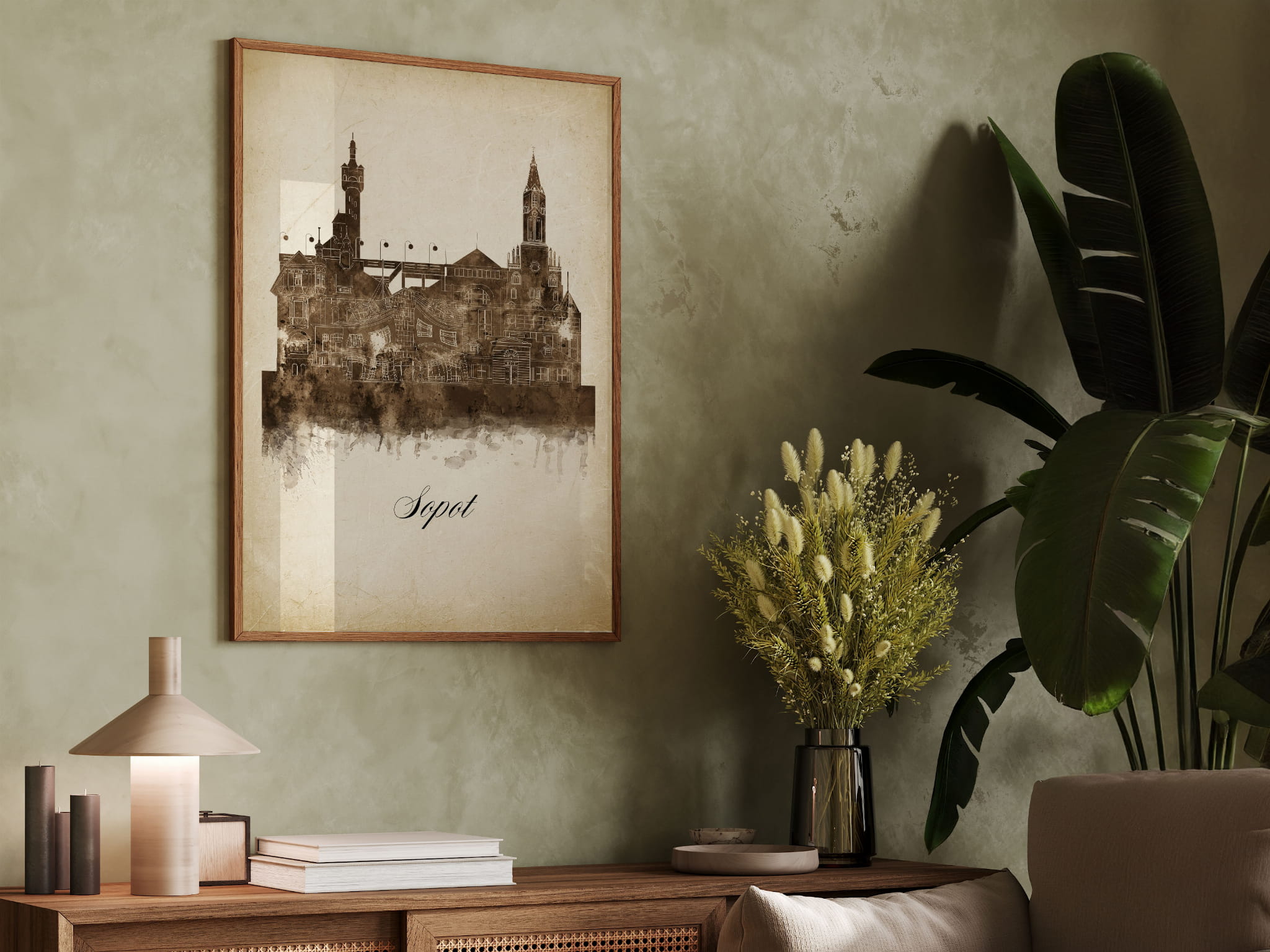 Plakat Skylines Sopot w stylu Vintage- Pionowy, Styl akwarelowy
