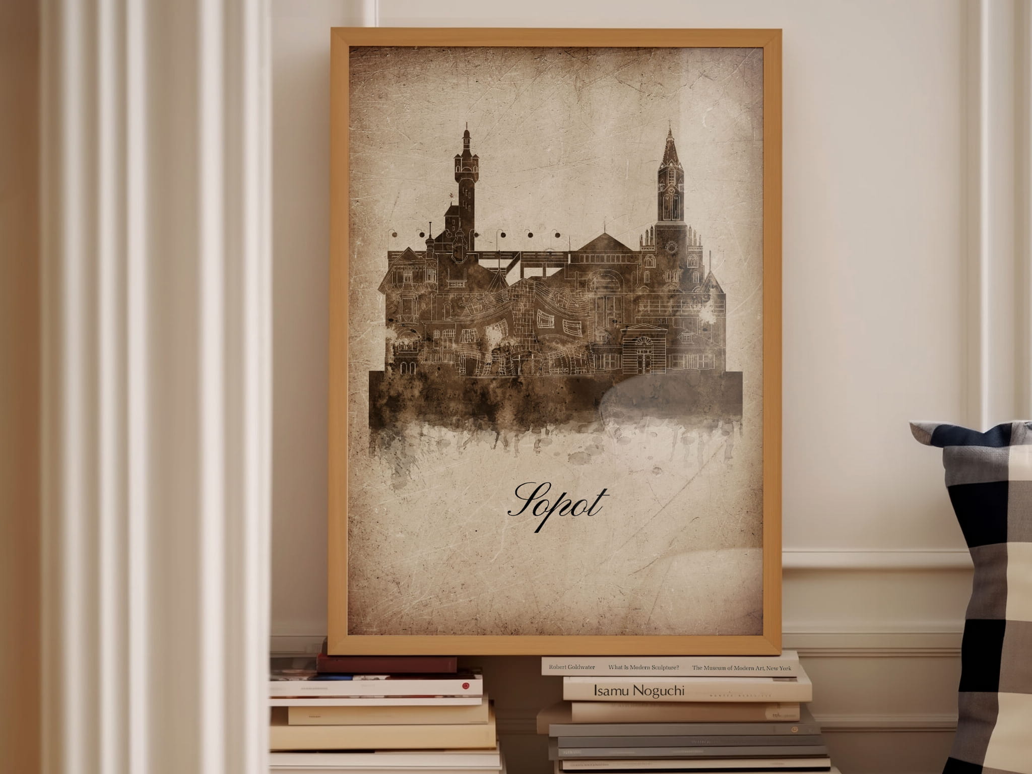 Plakat Skylines Sopot w stylu Vintage- Pionowy, Styl akwarelowy