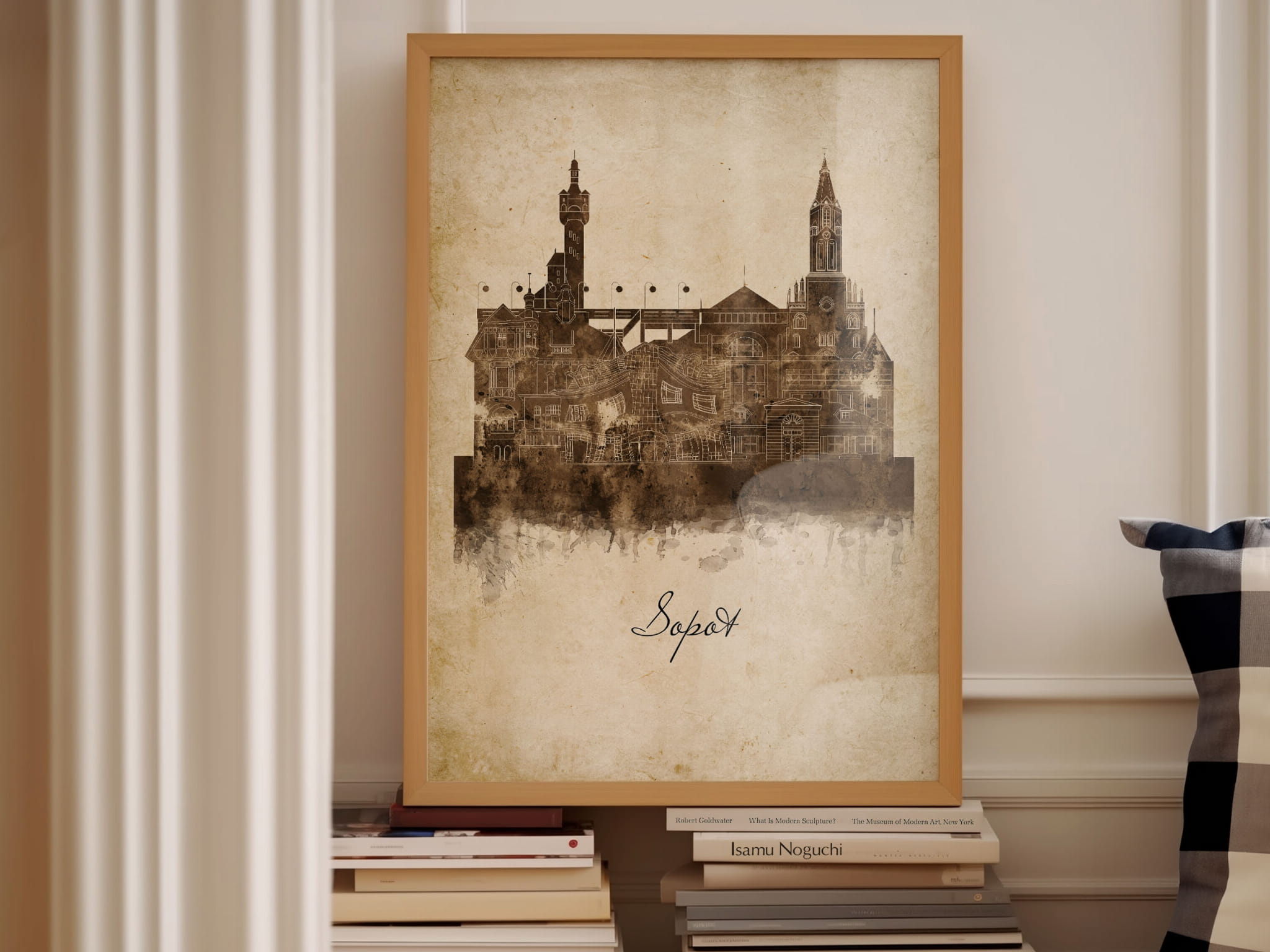 Plakat Skylines Sopot w stylu Vintage- Pionowy, Styl akwarelowy
