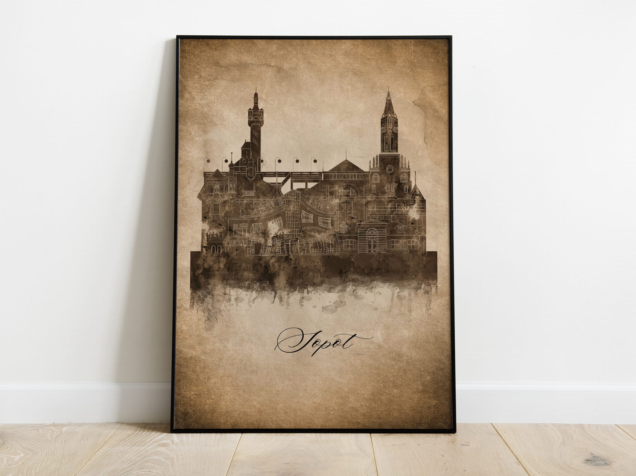 Plakat Skylines Sopot w stylu Vintage- Pionowy, Styl akwarelowy