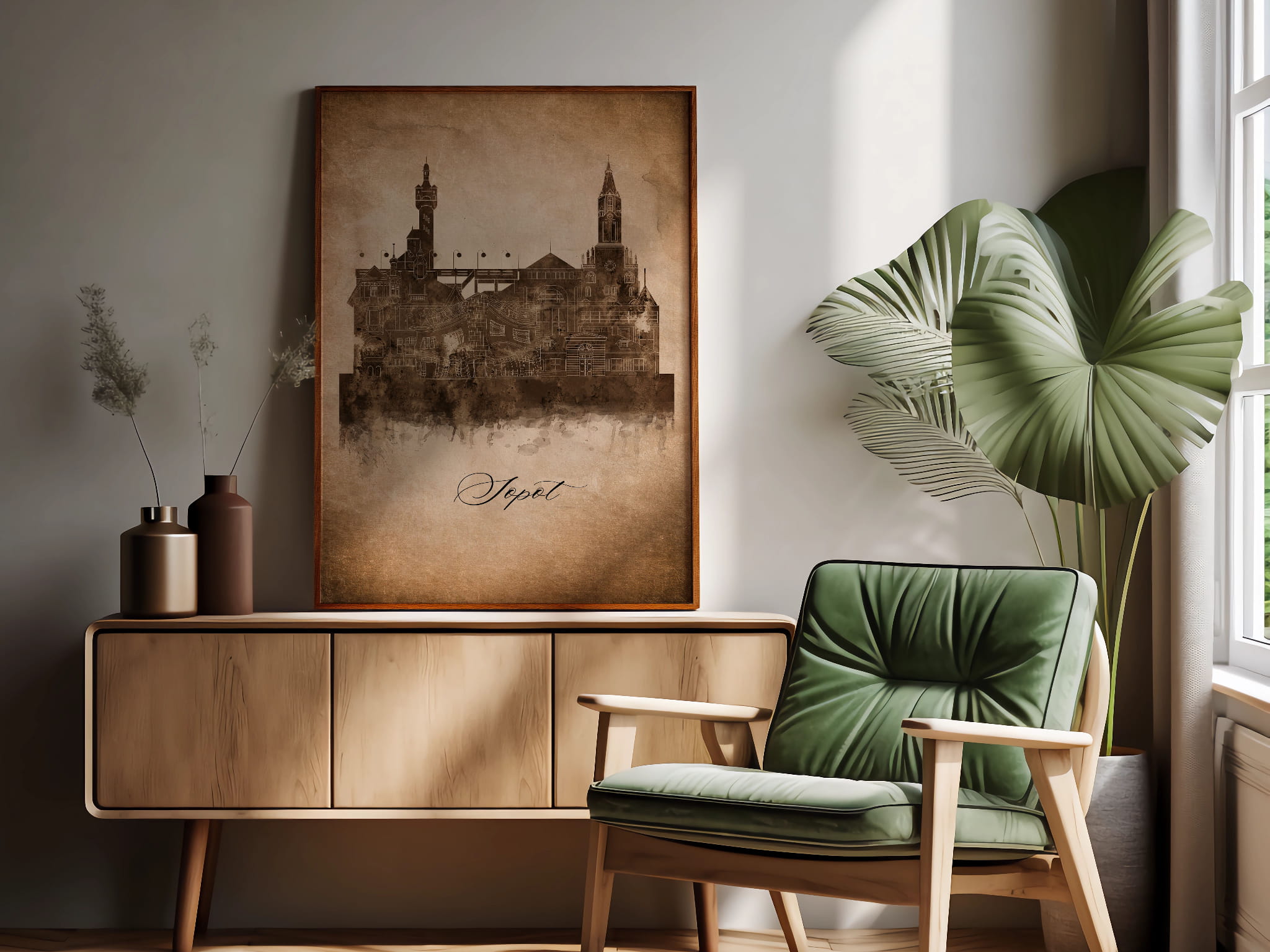 Plakaty skyline w stylu vintage to nowoczesne dzieła sztuki, które nawiązują do estetyki minionych dekad. Przedstawiają miejskie krajobrazy w retro kolorystyce, z wyblakłymi barwami i z delikatną patyną czasu. Kontury są często zmiękczone, a szczegóły budynków lekko stylizowane, co dodaje im nostalgicznego uroku. Tła plakatów utrzymane są w odcieniach przypominających stary papier, z subtelnymi teksturami i ciepłymi, przygaszonymi tonami. Całość tworzy elegancki i przytulny klimat, idealny do wnętrz, które łączą nowoczesność z klasycznym wdziękiem.