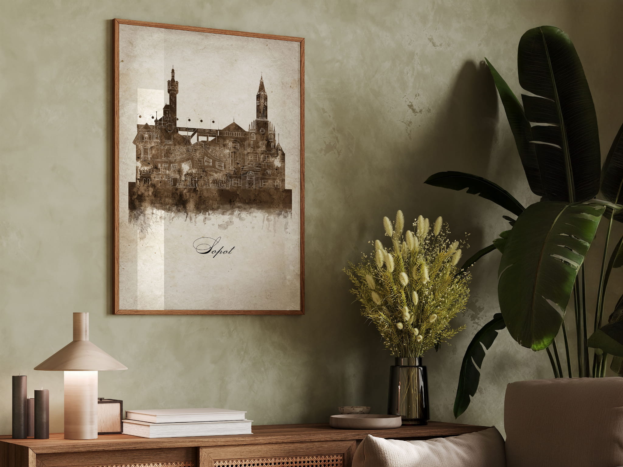 Plakat Skylines Sopot w stylu Vintage- Pionowy, Styl akwarelowy