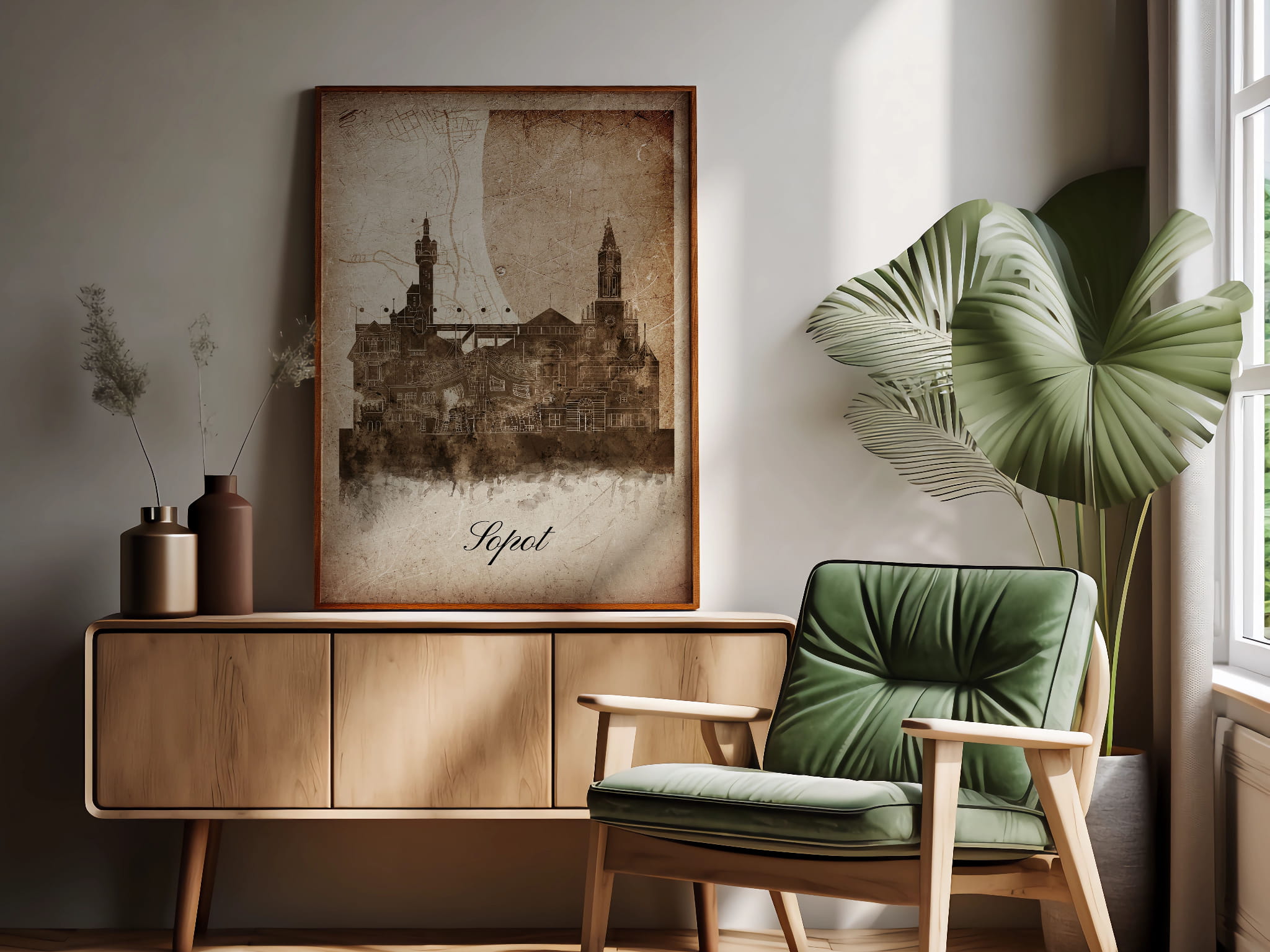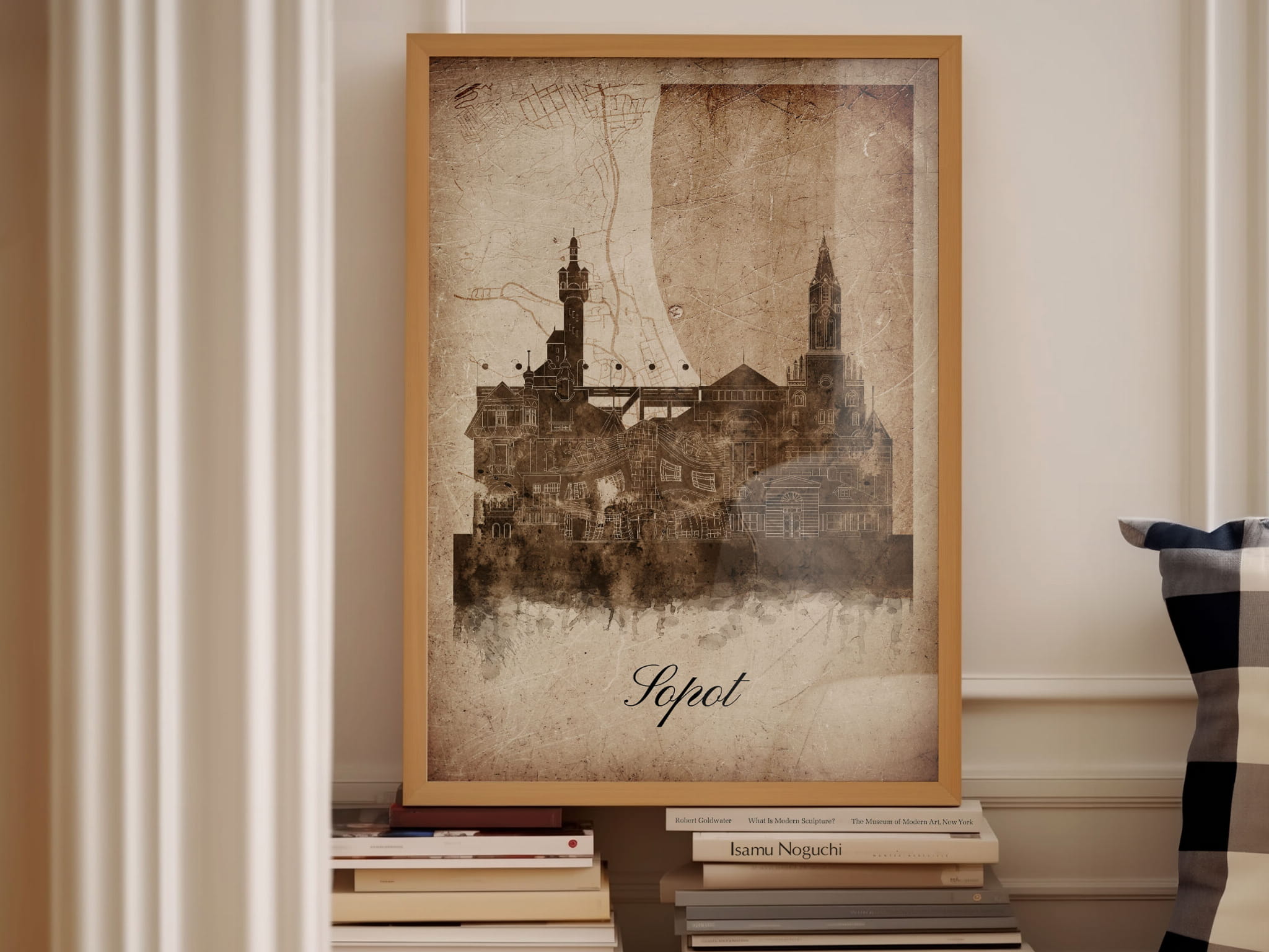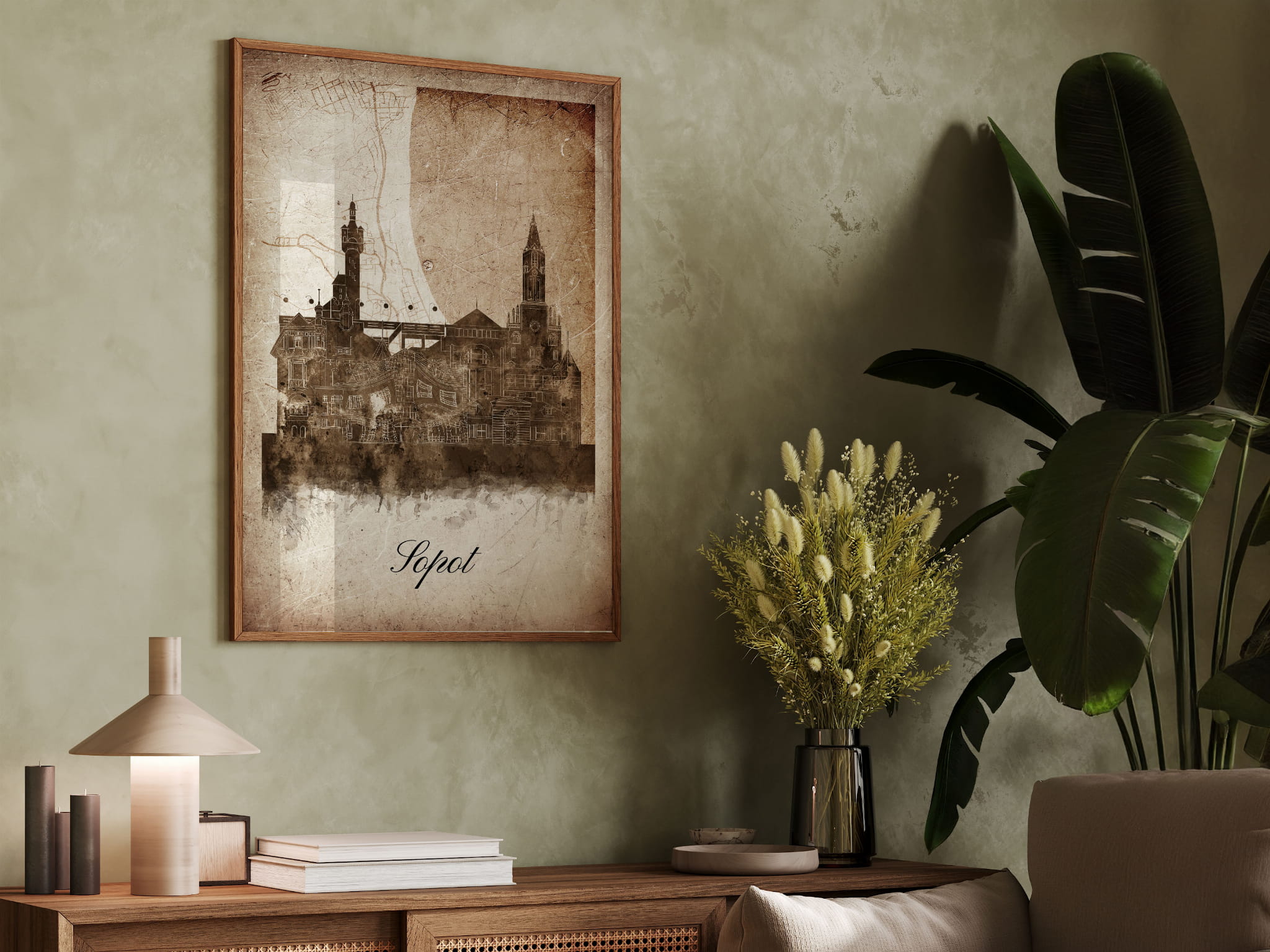 Plakat Skylines Sopot w stylu Vintage- Pionowy, Styl akwarelowy