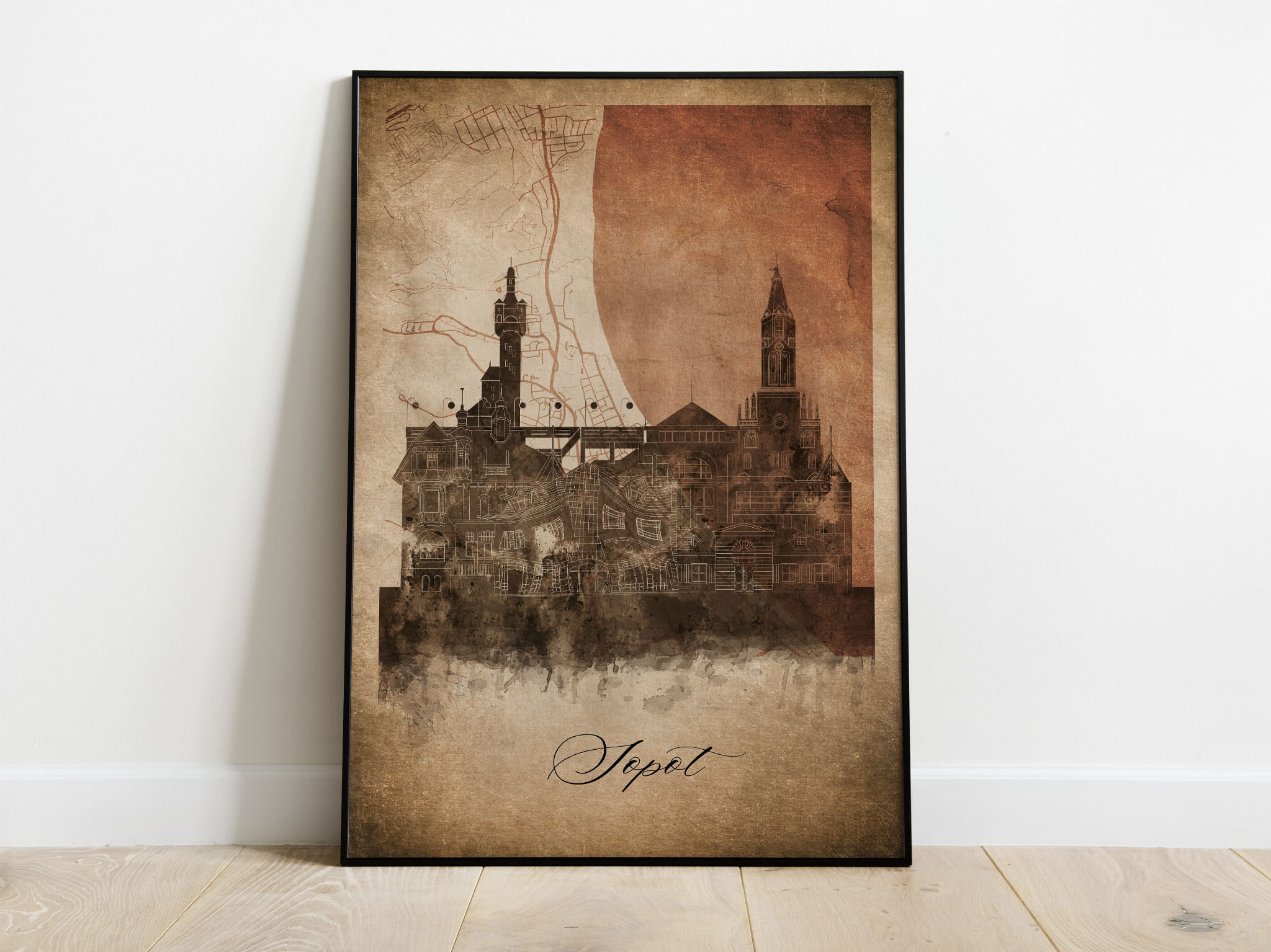 Plakat Skylines Sopot w stylu Vintage- Pionowy, Styl akwarelowy