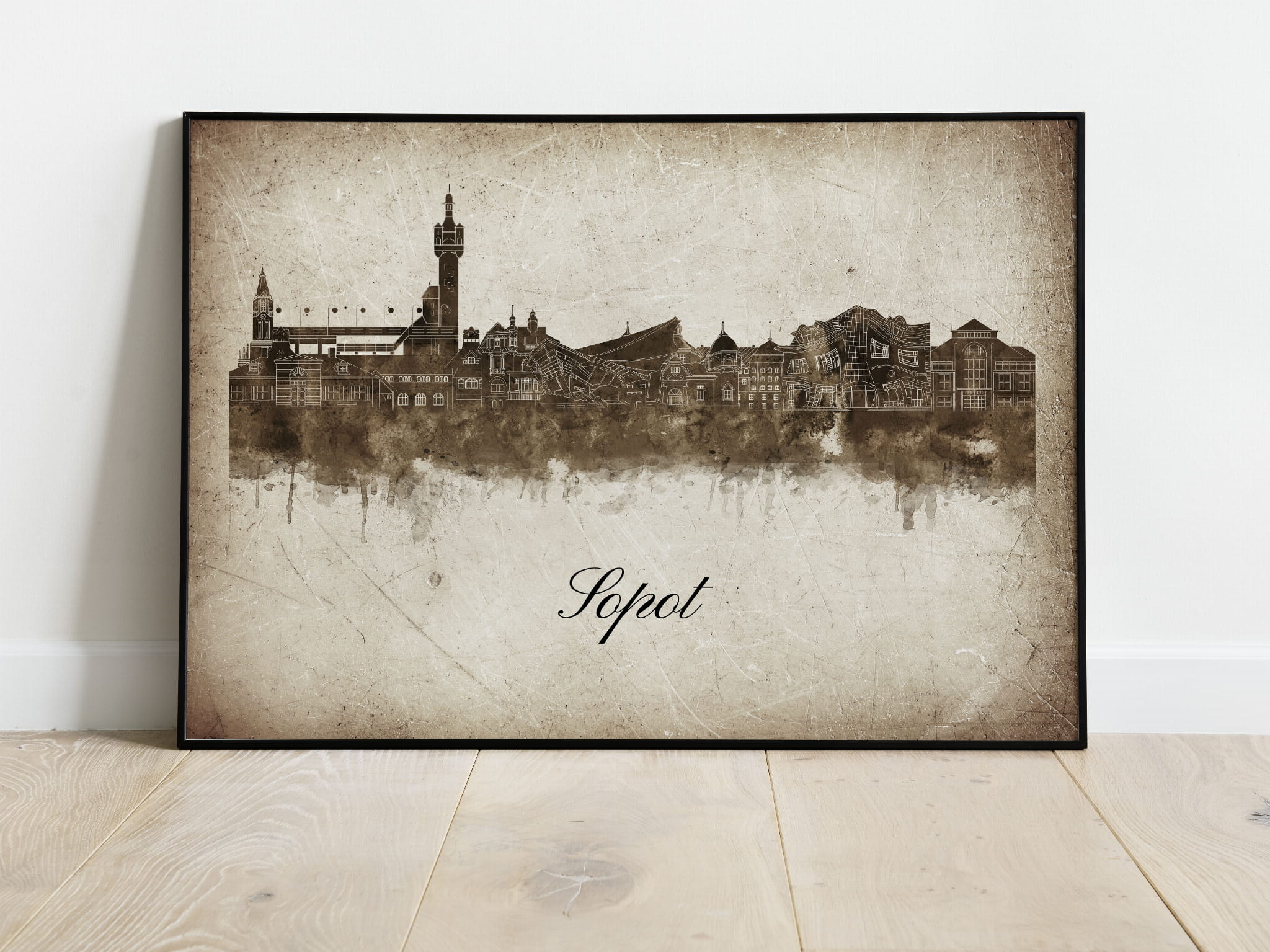 Plakat Skylines Sopot w stylu Vintage- Poziomy