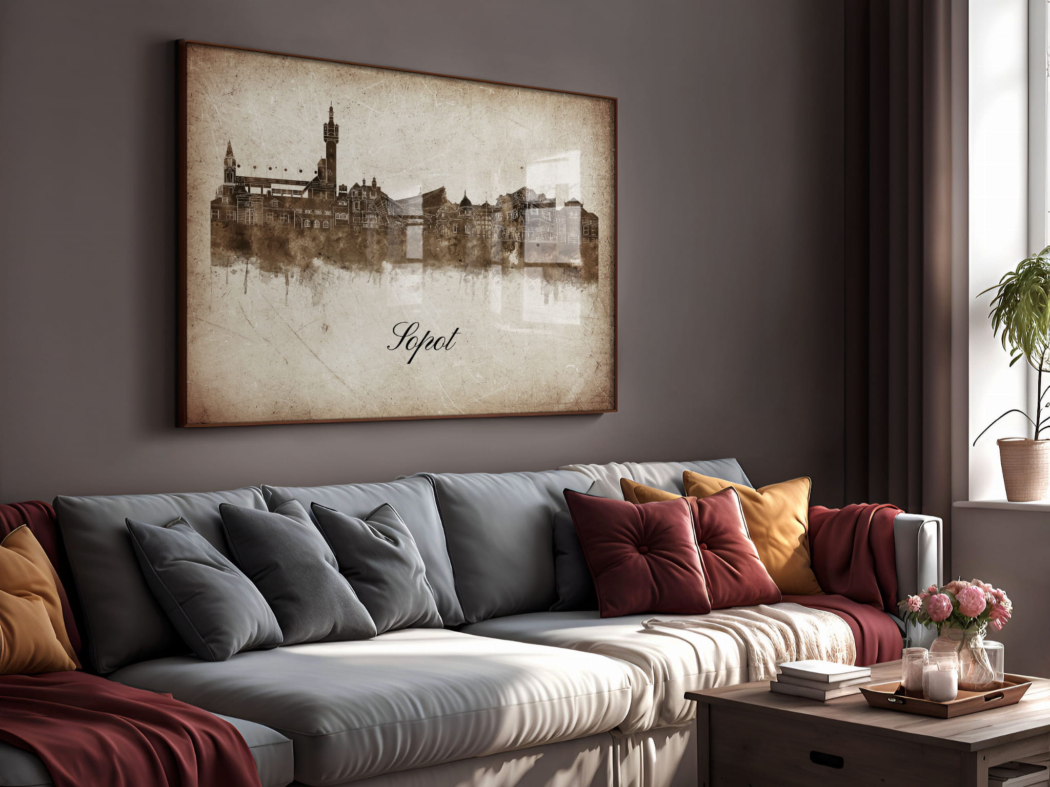 Plakaty skyline w stylu vintage to nowoczesne dzieła sztuki, które nawiązują do estetyki minionych dekad. Przedstawiają miejskie krajobrazy w retro kolorystyce, z wyblakłymi barwami i z delikatną patyną czasu. Kontury są często zmiękczone, a szczegóły budynków lekko stylizowane, co dodaje im nostalgicznego uroku. Tła plakatów utrzymane są w odcieniach przypominających stary papier, z subtelnymi teksturami i ciepłymi, przygaszonymi tonami. Całość tworzy elegancki i przytulny klimat, idealny do wnętrz, które łączą nowoczesność z klasycznym wdziękiem.