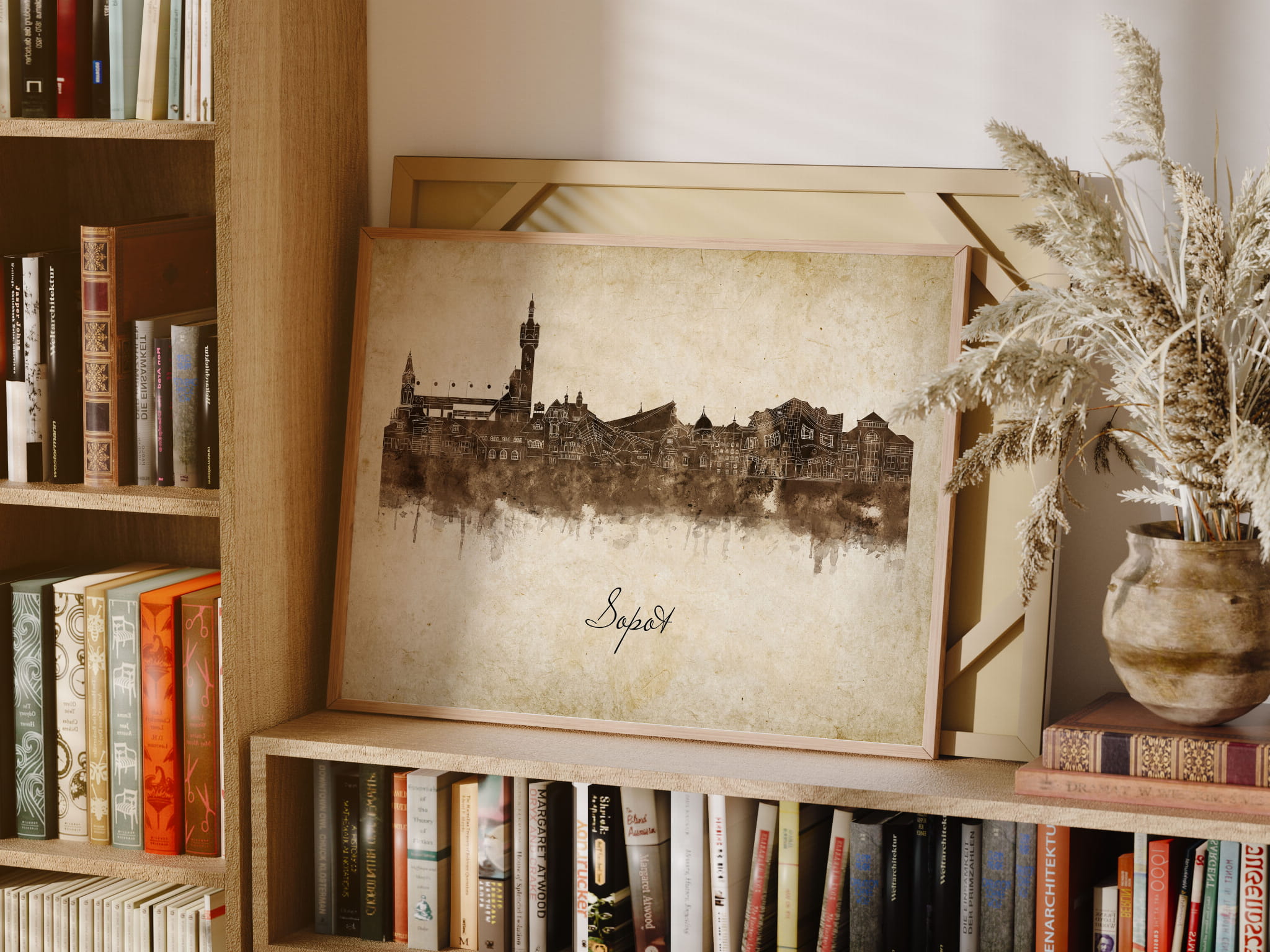 Plakat Skylines Sopot w stylu Vintage- Poziomy