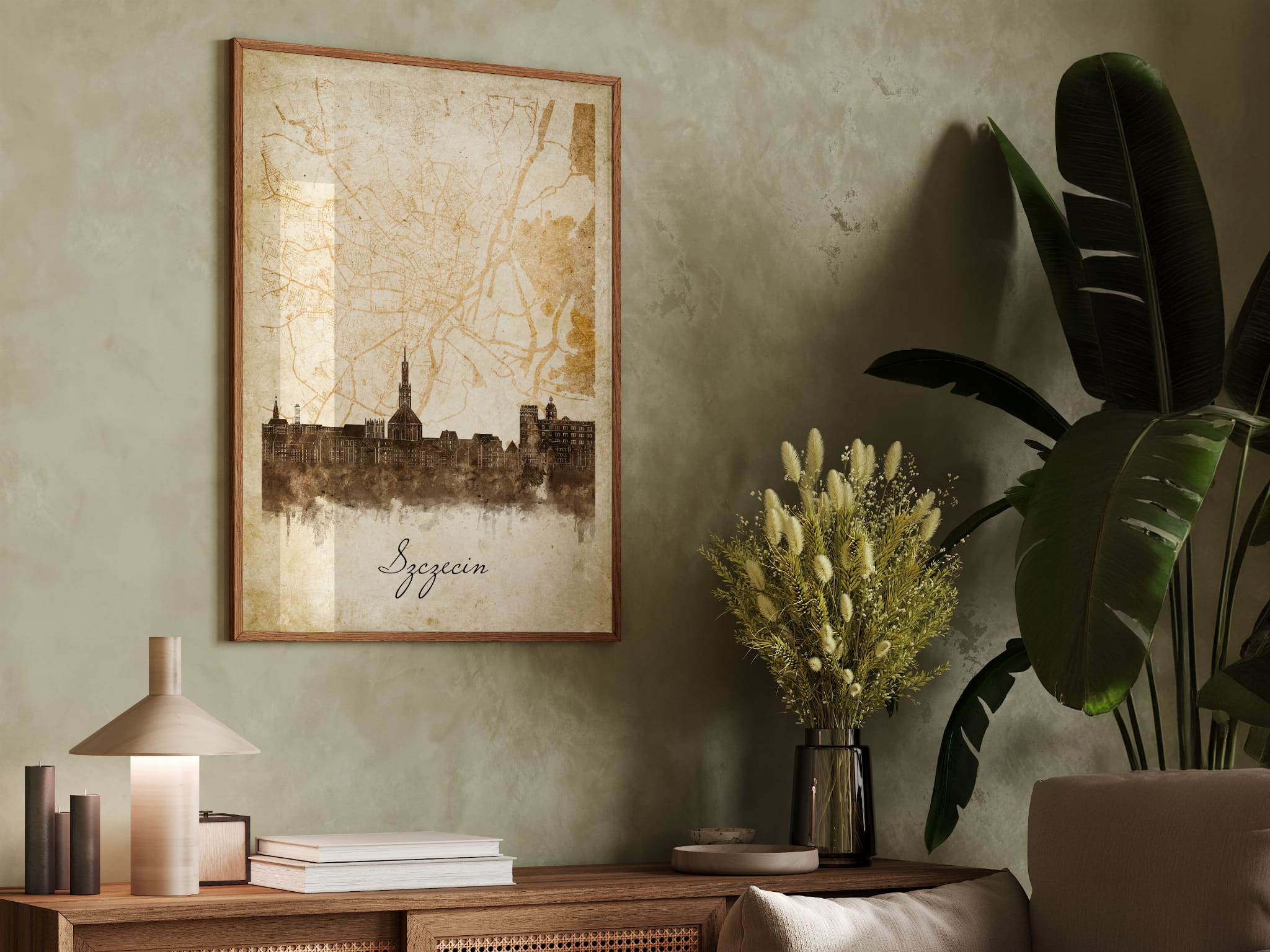 Plakat Skylines Szczecin w stylu Vintage- Pionowy, Styl akwarelowy