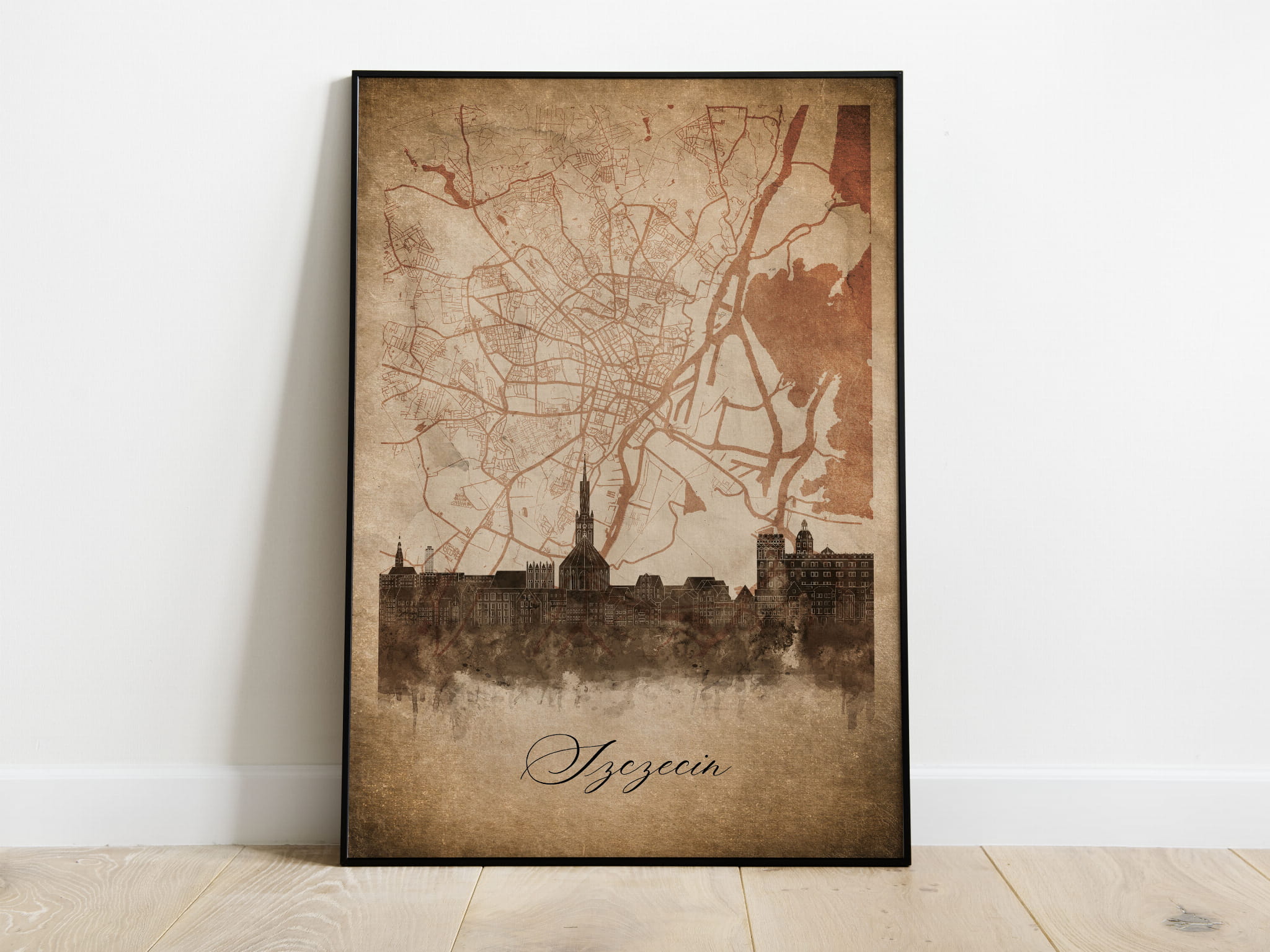 Plakat Skylines Szczecin w stylu Vintage- Pionowy, Styl akwarelowy