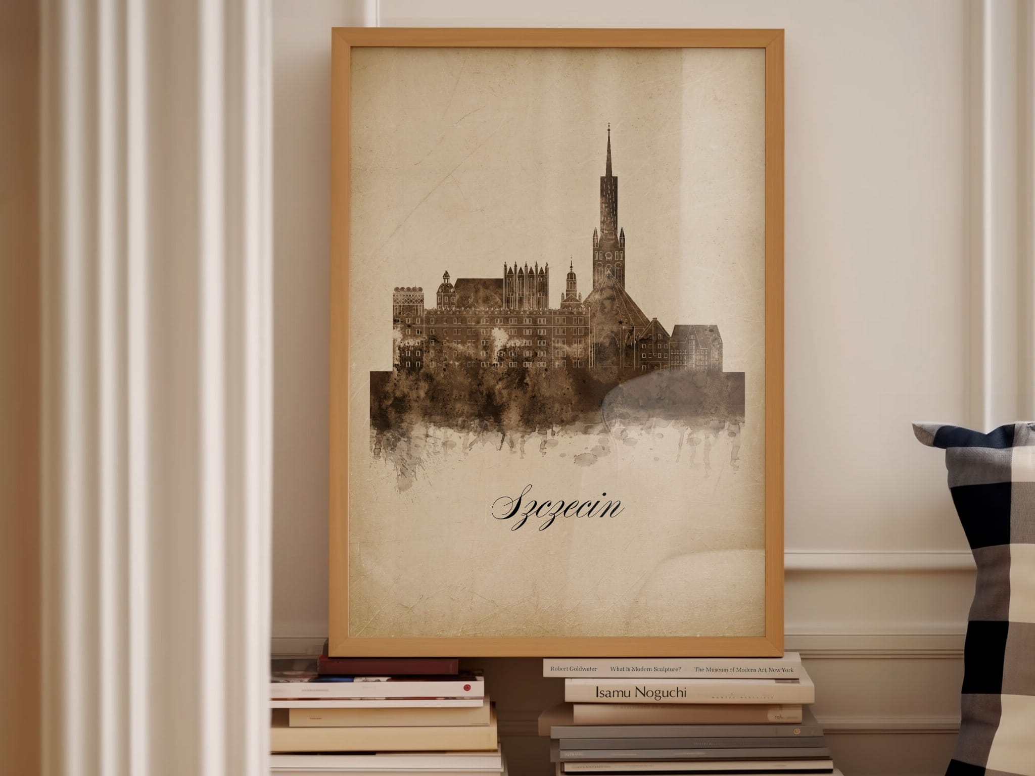 Plakaty skyline w stylu vintage to nowoczesne dzieła sztuki, które nawiązują do estetyki minionych dekad. Przedstawiają miejskie krajobrazy w retro kolorystyce, z wyblakłymi barwami i z delikatną patyną czasu. Kontury są często zmiękczone, a szczegóły budynków lekko stylizowane, co dodaje im nostalgicznego uroku. Tła plakatów utrzymane są w odcieniach przypominających stary papier, z subtelnymi teksturami i ciepłymi, przygaszonymi tonami. Całość tworzy elegancki i przytulny klimat, idealny do wnętrz, które łączą nowoczesność z klasycznym wdziękiem.
