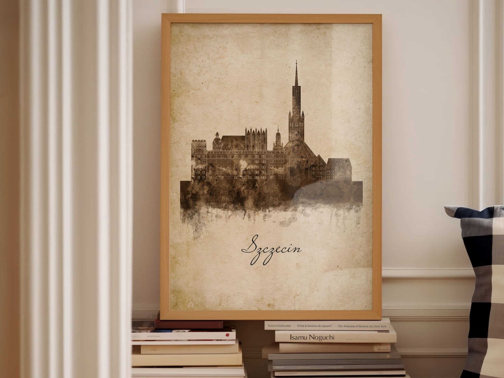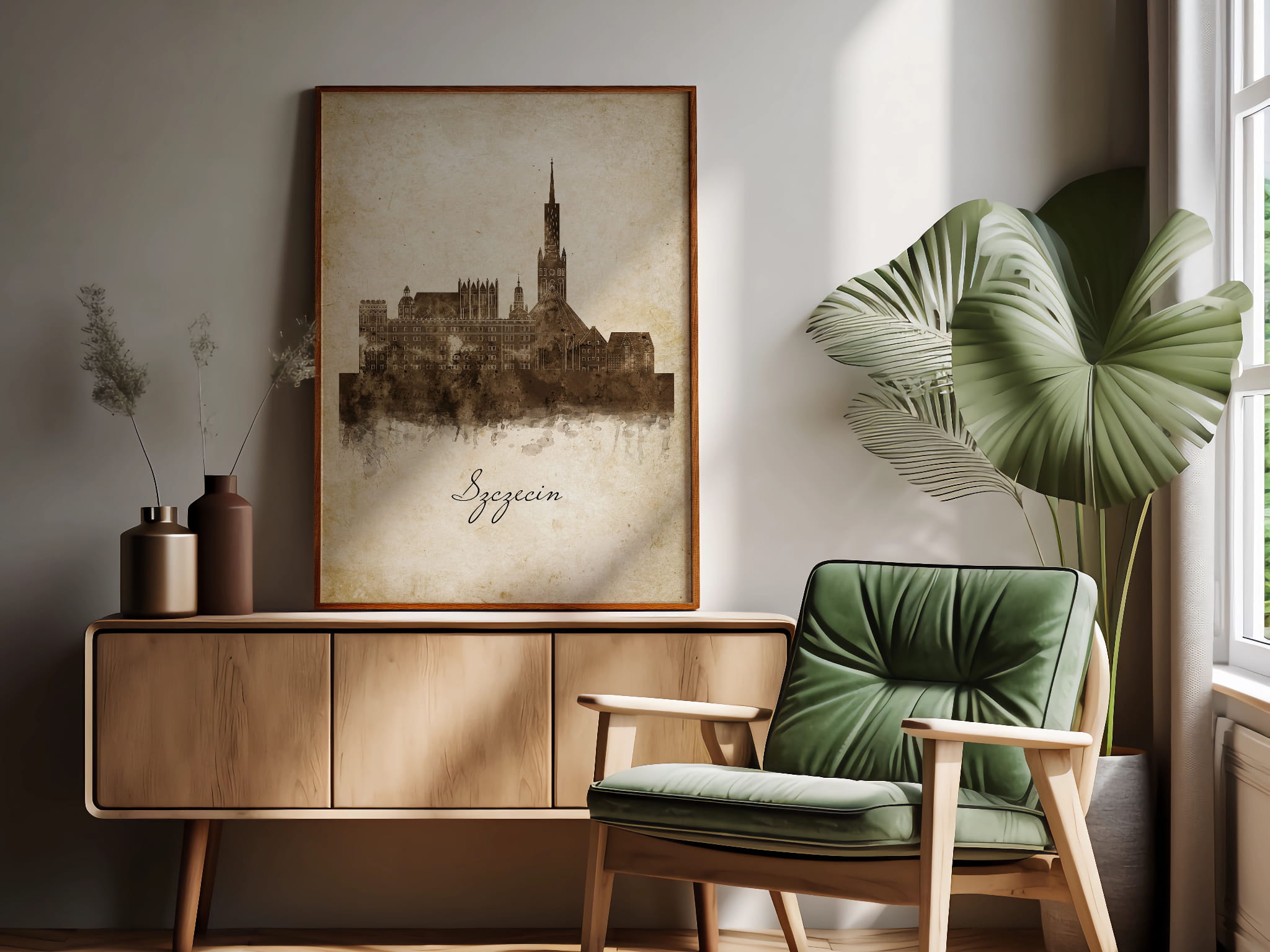 Plakaty skyline w stylu vintage to nowoczesne dzieła sztuki, które nawiązują do estetyki minionych dekad. Przedstawiają miejskie krajobrazy w retro kolorystyce, z wyblakłymi barwami i z delikatną patyną czasu. Kontury są często zmiękczone, a szczegóły budynków lekko stylizowane, co dodaje im nostalgicznego uroku. Tła plakatów utrzymane są w odcieniach przypominających stary papier, z subtelnymi teksturami i ciepłymi, przygaszonymi tonami. Całość tworzy elegancki i przytulny klimat, idealny do wnętrz, które łączą nowoczesność z klasycznym wdziękiem.