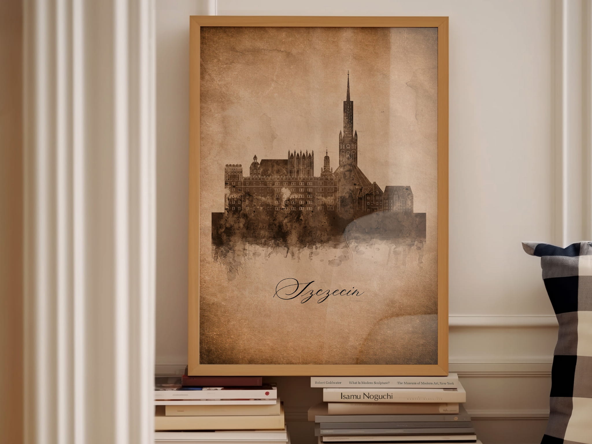 Plakaty skyline w stylu vintage to nowoczesne dzieła sztuki, które nawiązują do estetyki minionych dekad. Przedstawiają miejskie krajobrazy w retro kolorystyce, z wyblakłymi barwami i z delikatną patyną czasu. Kontury są często zmiękczone, a szczegóły budynków lekko stylizowane, co dodaje im nostalgicznego uroku. Tła plakatów utrzymane są w odcieniach przypominających stary papier, z subtelnymi teksturami i ciepłymi, przygaszonymi tonami. Całość tworzy elegancki i przytulny klimat, idealny do wnętrz, które łączą nowoczesność z klasycznym wdziękiem.