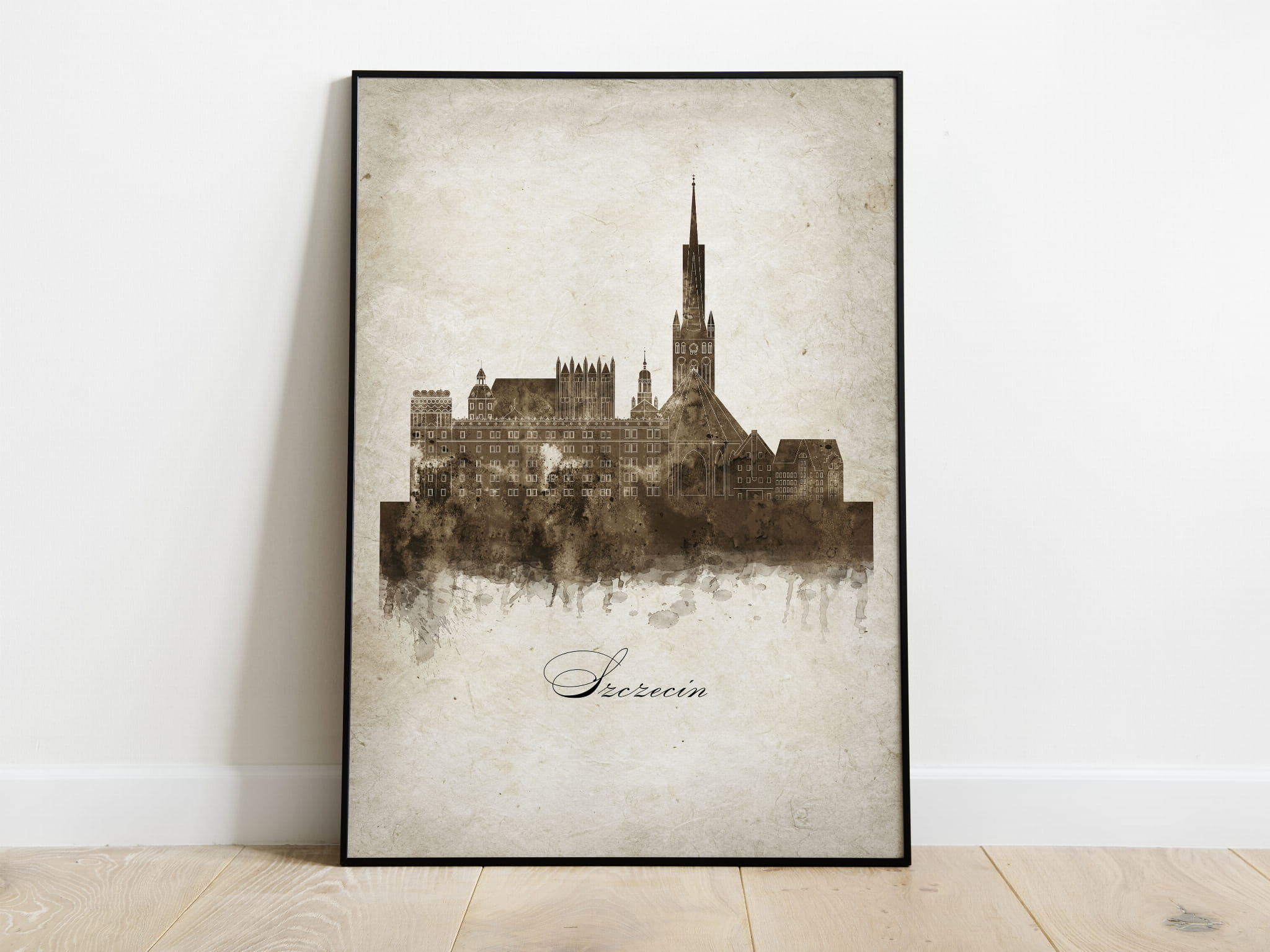 Plakat Skylines Szczecin w stylu Vintage- Pionowy, Styl akwarelowy