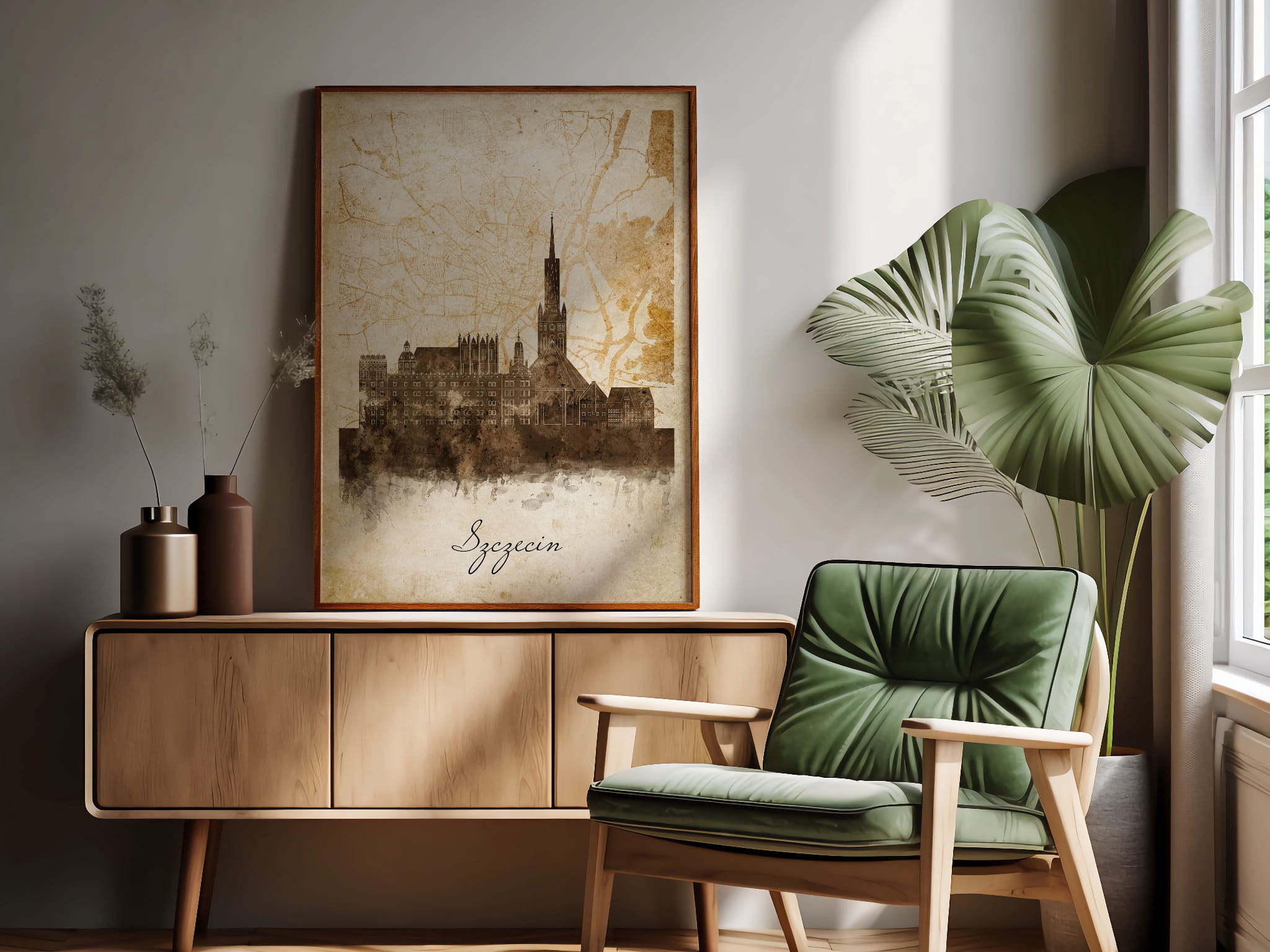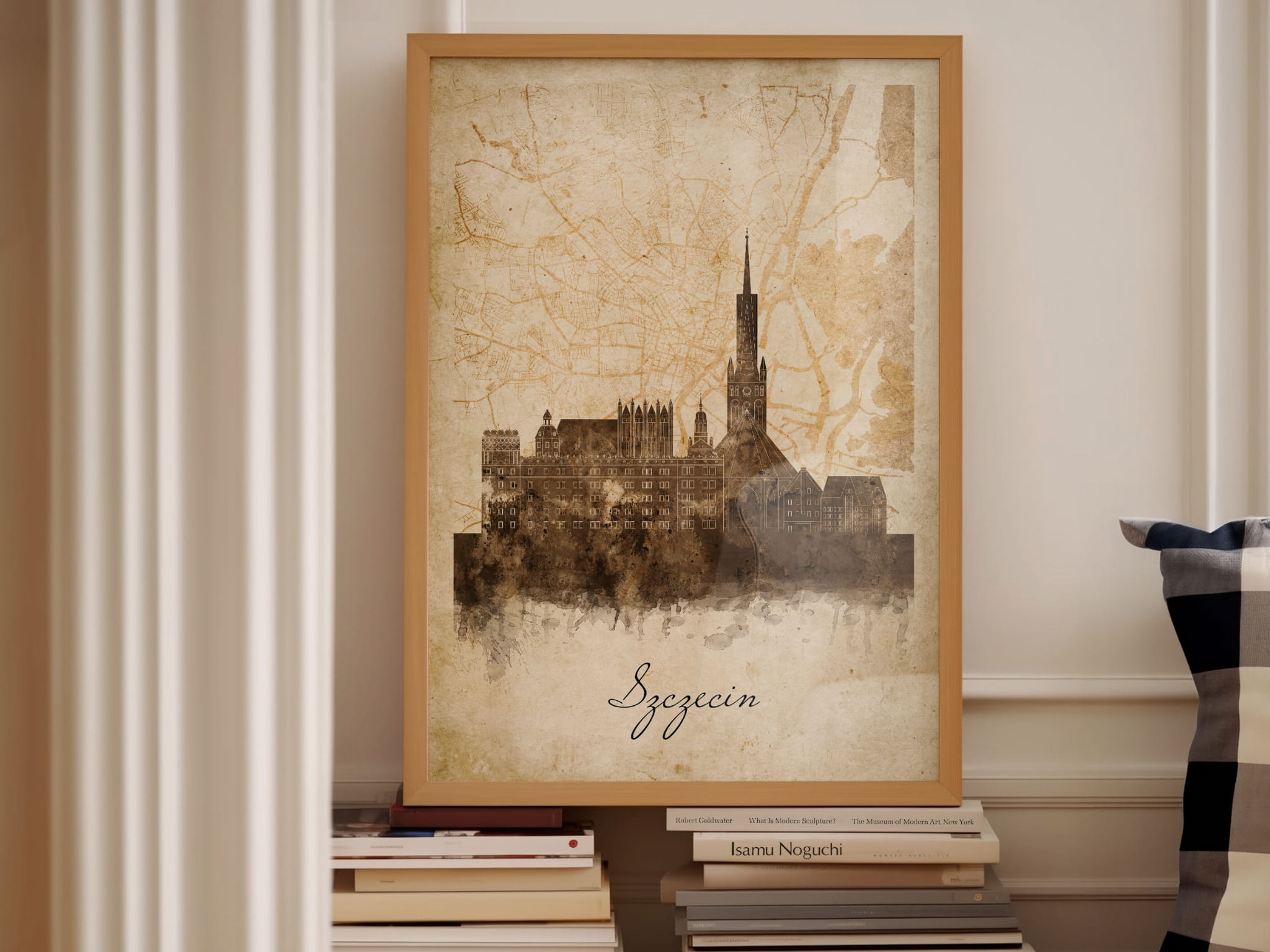 Plakaty skyline w stylu vintage to nowoczesne dzieła sztuki, które nawiązują do estetyki minionych dekad. Przedstawiają miejskie krajobrazy w retro kolorystyce, z wyblakłymi barwami i z delikatną patyną czasu. Kontury są często zmiękczone, a szczegóły budynków lekko stylizowane, co dodaje im nostalgicznego uroku. Tła plakatów utrzymane są w odcieniach przypominających stary papier, z subtelnymi teksturami i ciepłymi, przygaszonymi tonami. Całość tworzy elegancki i przytulny klimat, idealny do wnętrz, które łączą nowoczesność z klasycznym wdziękiem.