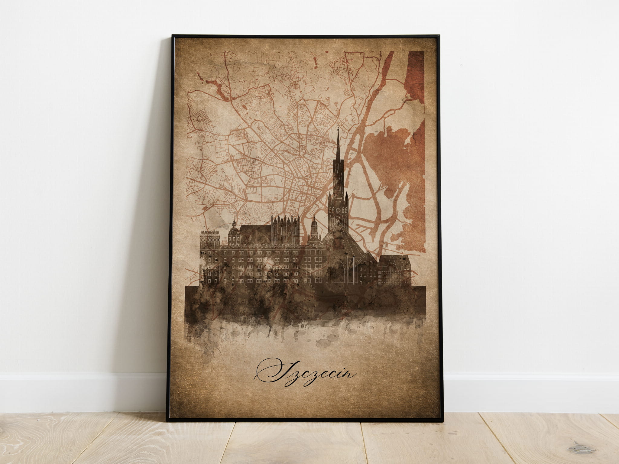 Plakat Skylines Szczecin w stylu Vintage- Pionowy, Styl akwarelowy