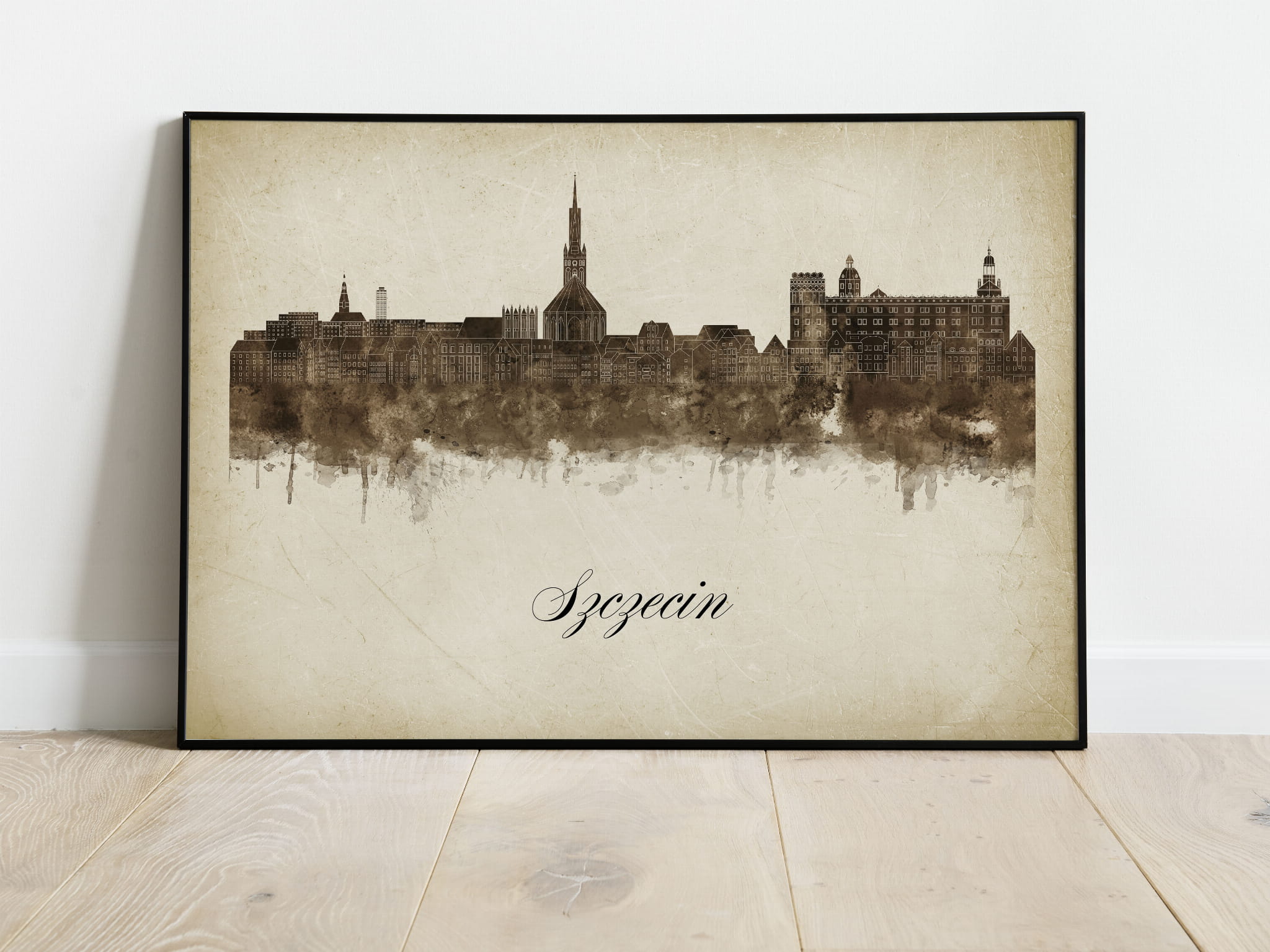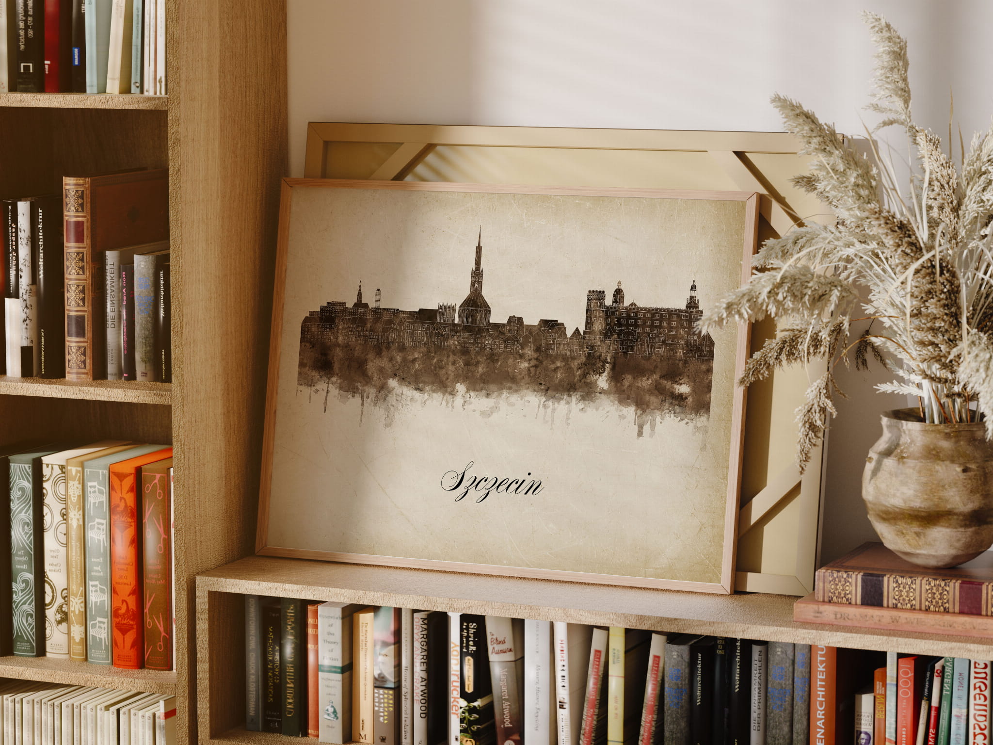 Plakaty skyline w stylu vintage to nowoczesne dzieła sztuki, które nawiązują do estetyki minionych dekad. Przedstawiają miejskie krajobrazy w retro kolorystyce, z wyblakłymi barwami i z delikatną patyną czasu. Kontury są często zmiękczone, a szczegóły budynków lekko stylizowane, co dodaje im nostalgicznego uroku. Tła plakatów utrzymane są w odcieniach przypominających stary papier, z subtelnymi teksturami i ciepłymi, przygaszonymi tonami. Całość tworzy elegancki i przytulny klimat, idealny do wnętrz, które łączą nowoczesność z klasycznym wdziękiem.