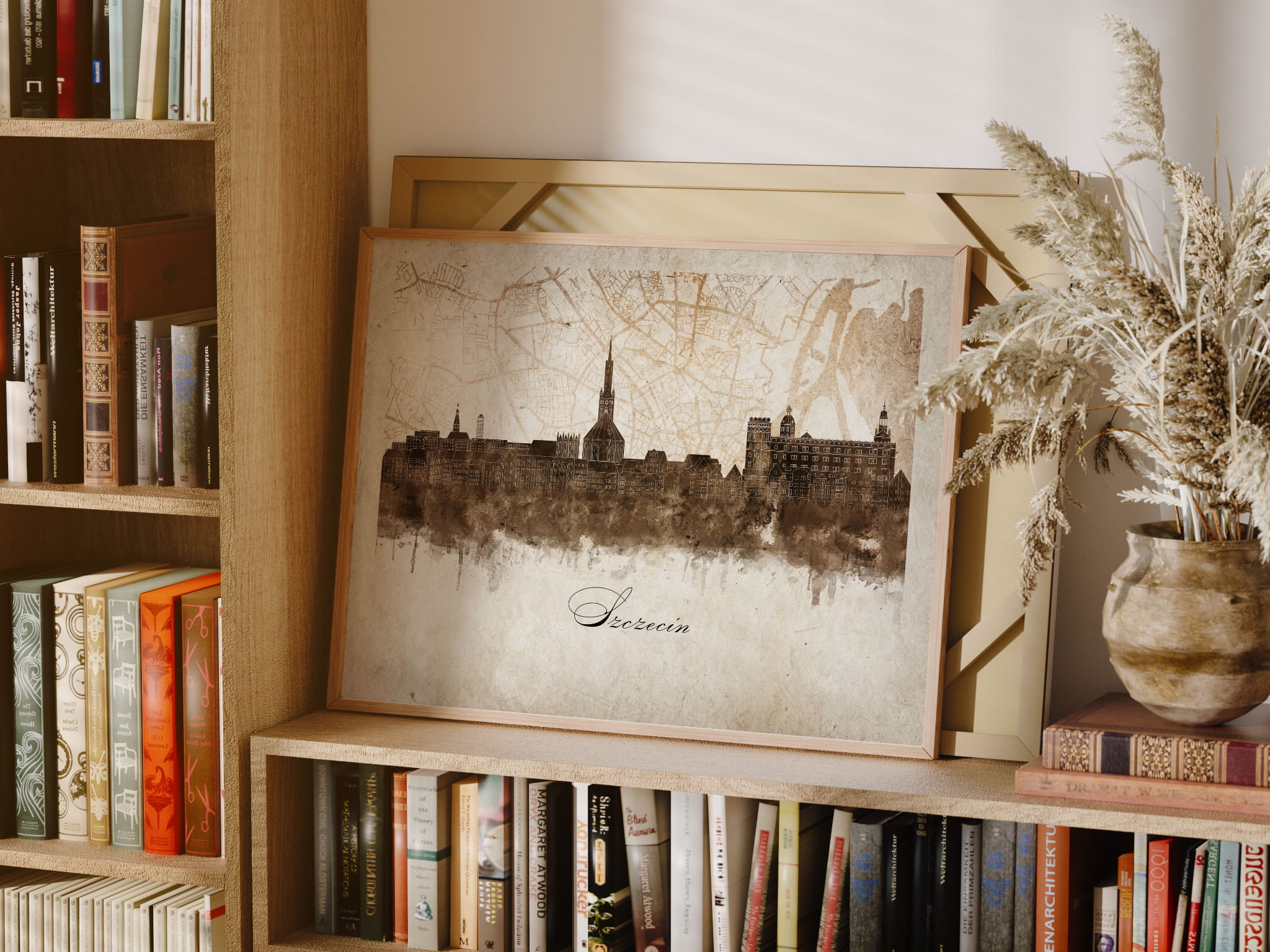 Plakaty skyline w stylu vintage to nowoczesne dzieła sztuki, które nawiązują do estetyki minionych dekad. Przedstawiają miejskie krajobrazy w retro kolorystyce, z wyblakłymi barwami i z delikatną patyną czasu. Kontury są często zmiękczone, a szczegóły budynków lekko stylizowane, co dodaje im nostalgicznego uroku. Tła plakatów utrzymane są w odcieniach przypominających stary papier, z subtelnymi teksturami i ciepłymi, przygaszonymi tonami. Całość tworzy elegancki i przytulny klimat, idealny do wnętrz, które łączą nowoczesność z klasycznym wdziękiem.