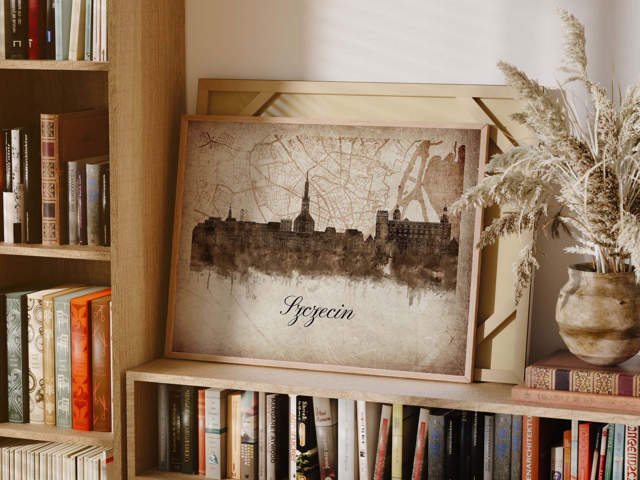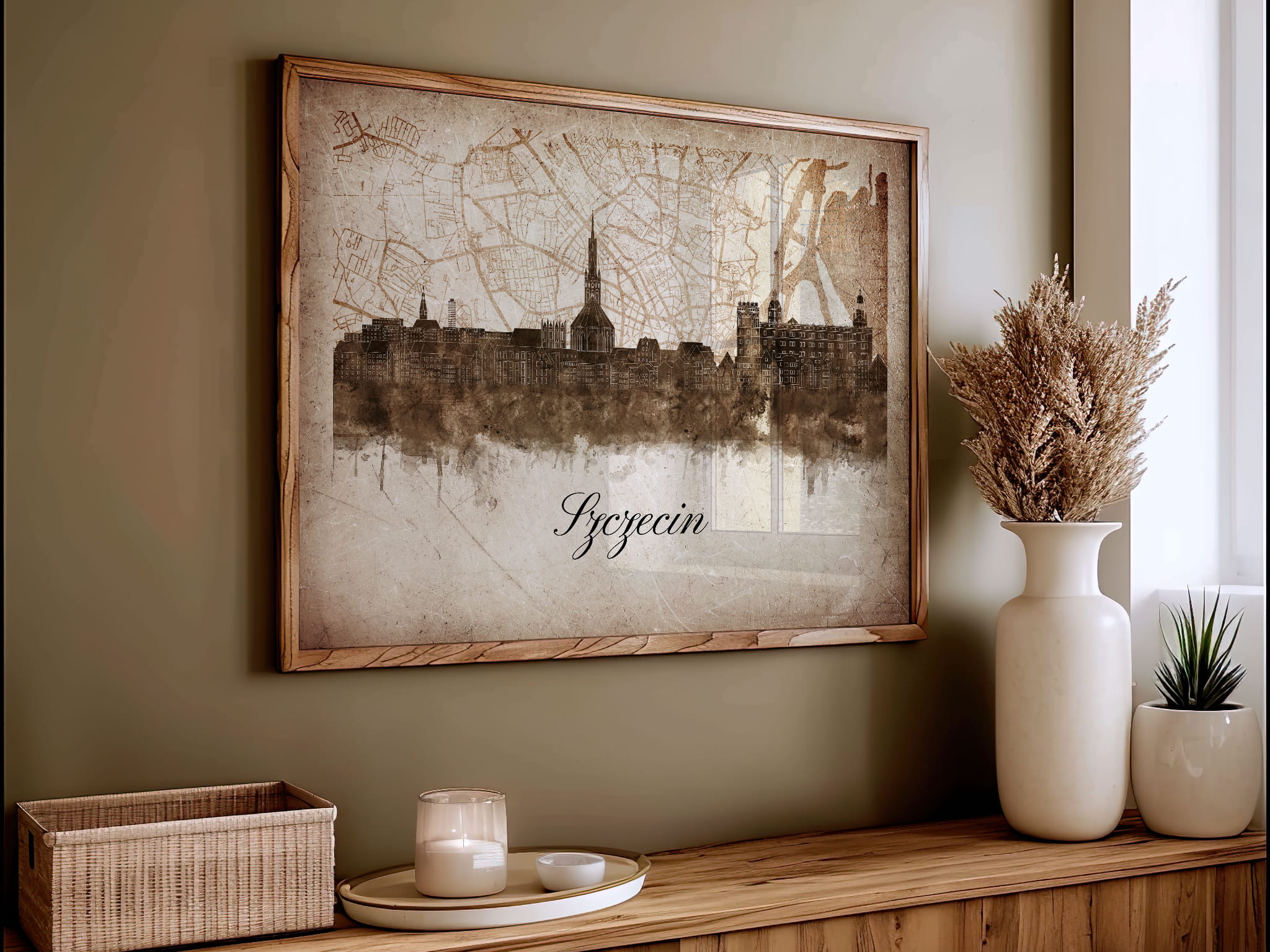 Plakaty skyline w stylu vintage to nowoczesne dzieła sztuki, które nawiązują do estetyki minionych dekad. Przedstawiają miejskie krajobrazy w retro kolorystyce, z wyblakłymi barwami i z delikatną patyną czasu. Kontury są często zmiękczone, a szczegóły budynków lekko stylizowane, co dodaje im nostalgicznego uroku. Tła plakatów utrzymane są w odcieniach przypominających stary papier, z subtelnymi teksturami i ciepłymi, przygaszonymi tonami. Całość tworzy elegancki i przytulny klimat, idealny do wnętrz, które łączą nowoczesność z klasycznym wdziękiem.