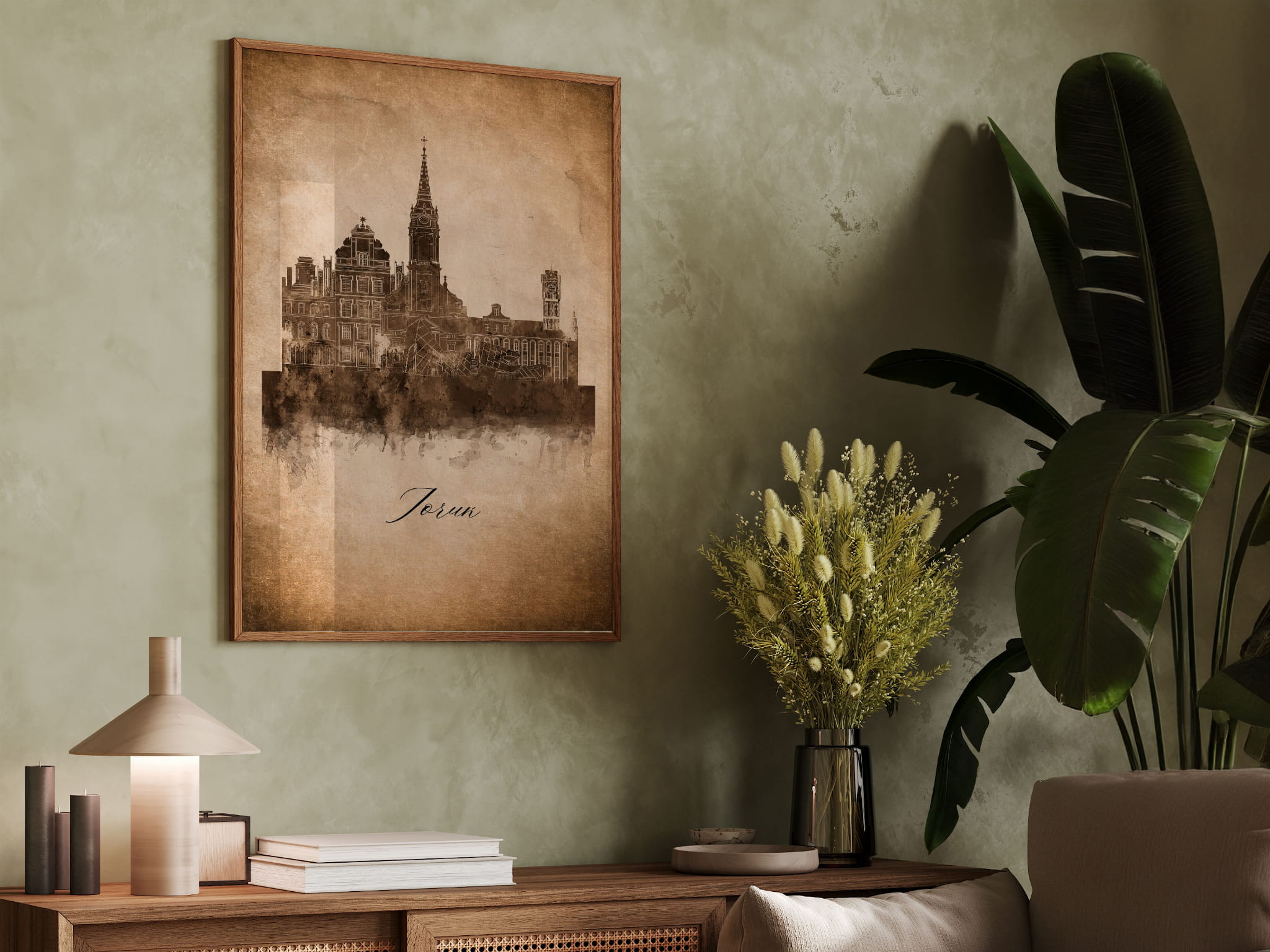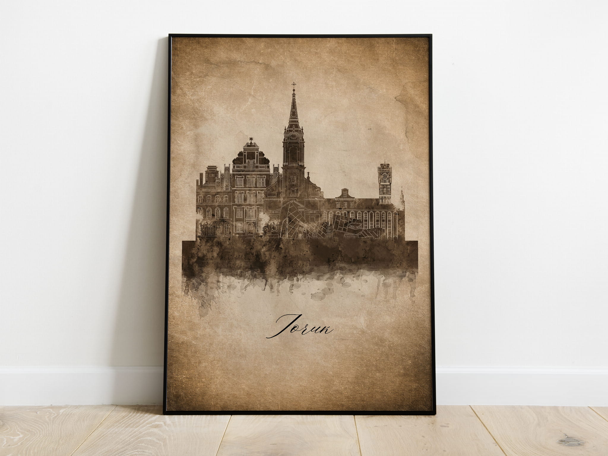 Plakat Skylines Toruń w stylu Vintage- Pionowy, Styl akwarelowy
