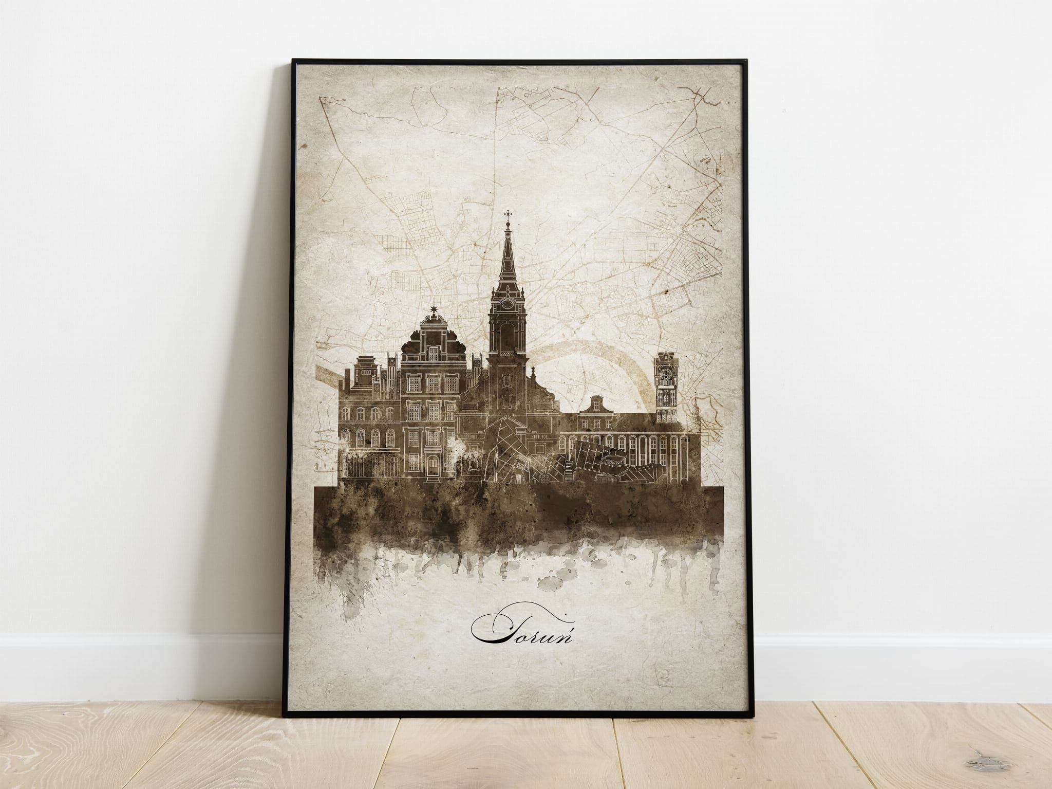 Plakat Skylines Toruń w stylu Vintage- Pionowy, Styl akwarelowy